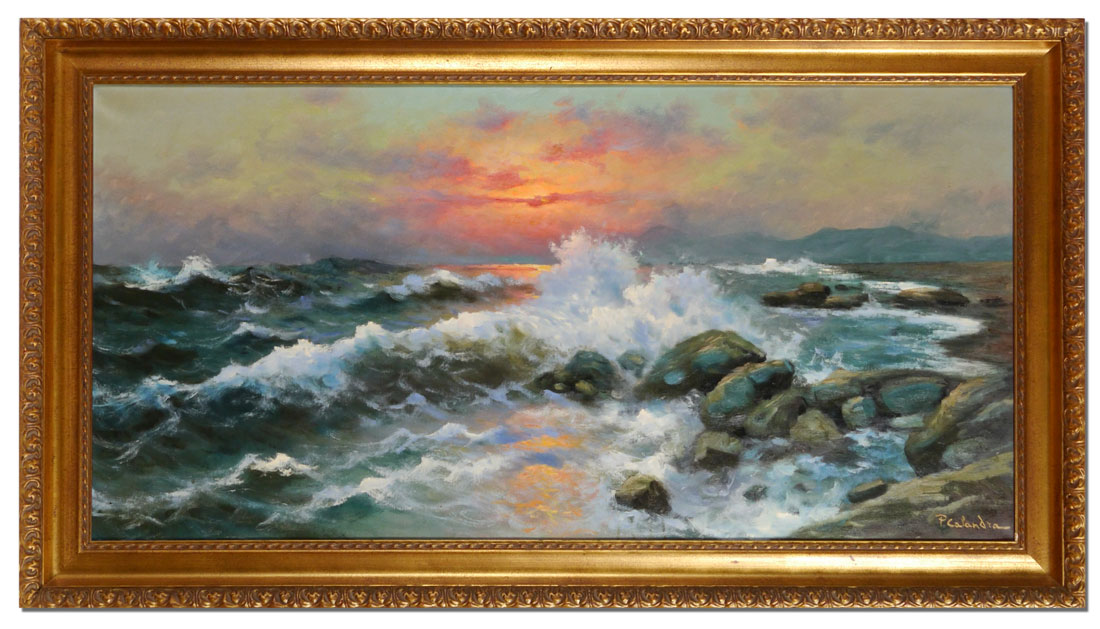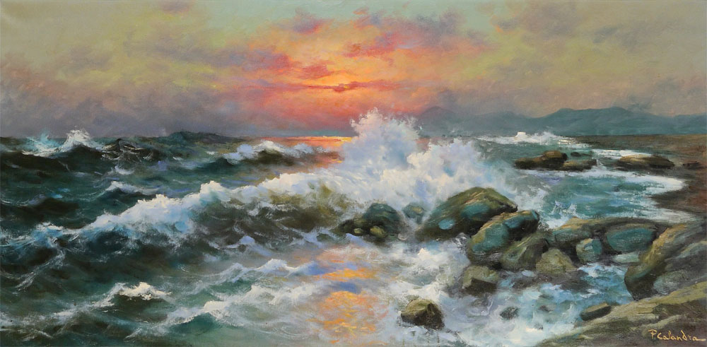 P CALANDRA COASTAL OIL/CANVAS: 24'' x 48'', signed lower right, framed, 30'' x 56''.