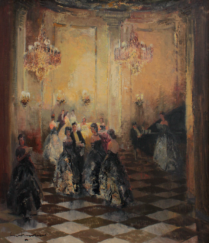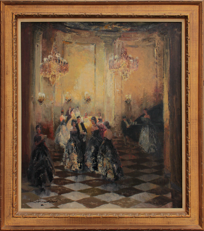 GSCHOSMANN, Ludwig, (German, 1894-1913): Ballroom Scene, Oil/Canvas, 35 1/2'' x 31'', signed lower left, framed, 43 1/2'' x 39 1/2''.