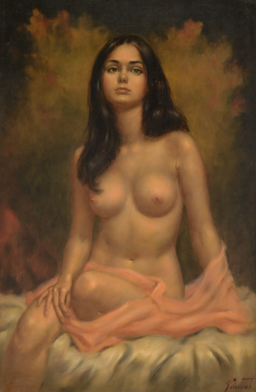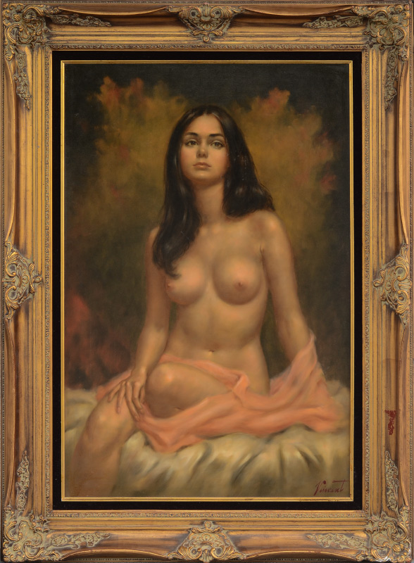 GARRISON, Larry ''Vincent'', (American, 1923-2007): Portrait titled ''Laura'' verso, Oil/Board, 36'' x 24'', signed Vincent lower right, framed, 46'' x 34''.