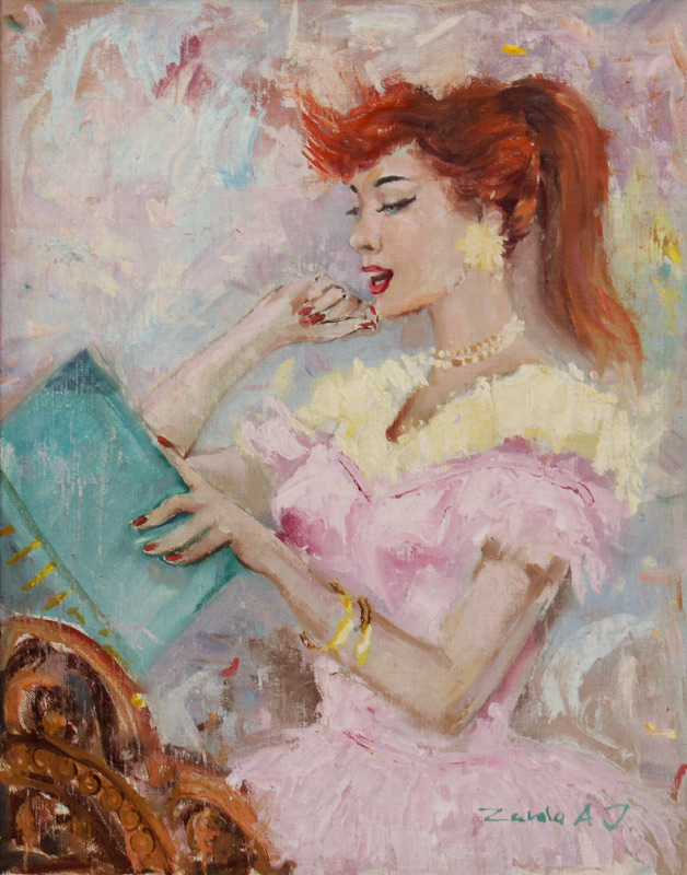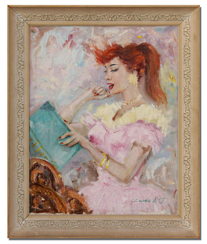 ILLEGIBLY SIGNED PAINTING OF A REDHEADED BEAUTY: Oil/Canvasboard, 20'' x 16'', signed lower right, framed, 24'' x 20''.