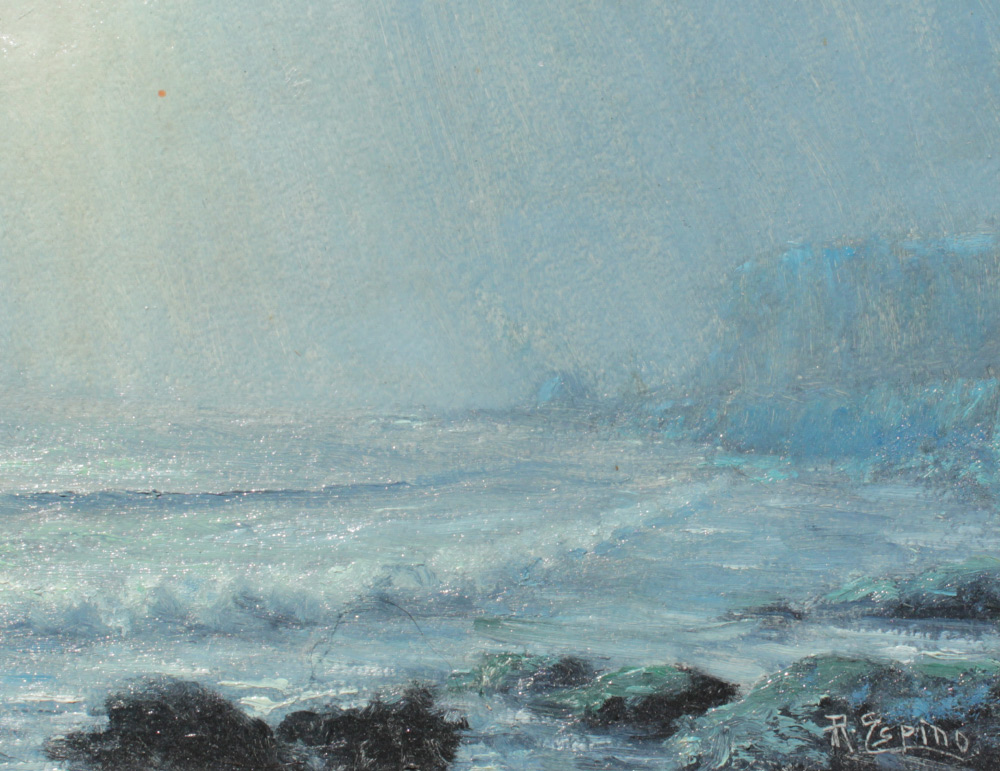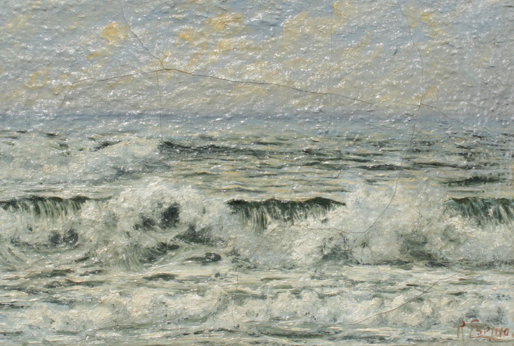 CONDITION: Several scattered flecks, oil/canvas has visible cracklure.