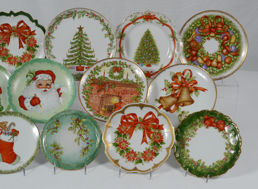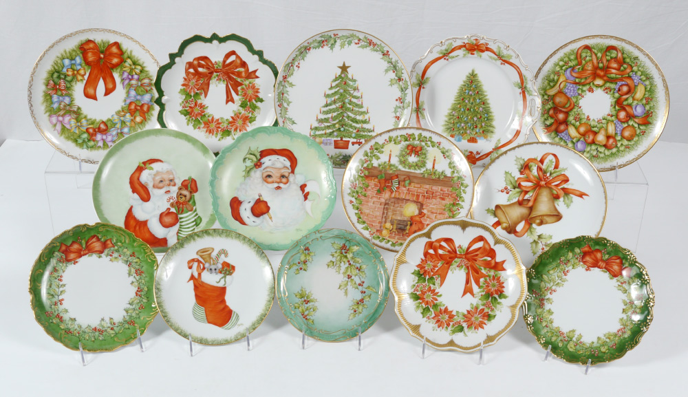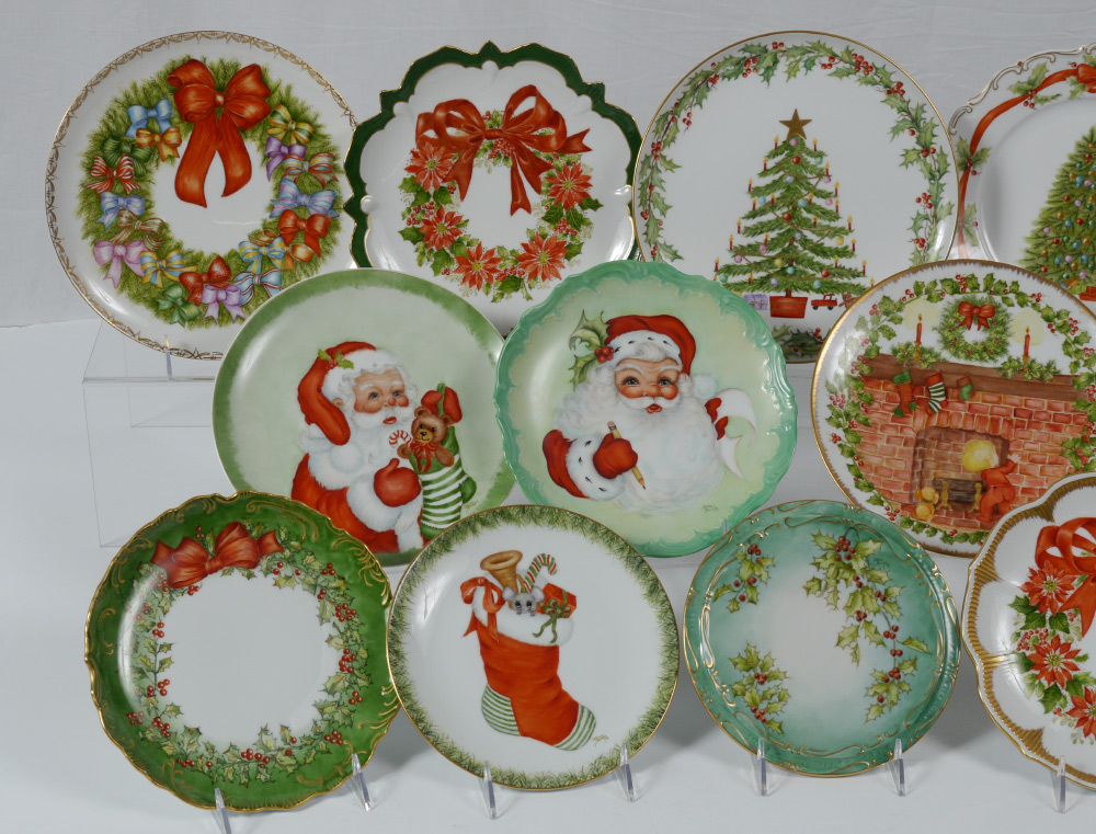 BECKER, Irene. (American 1925-2014): Group of 14 Christmas motif hand painted plates signed by the award winning artist. Measuring 10-12'' dia.