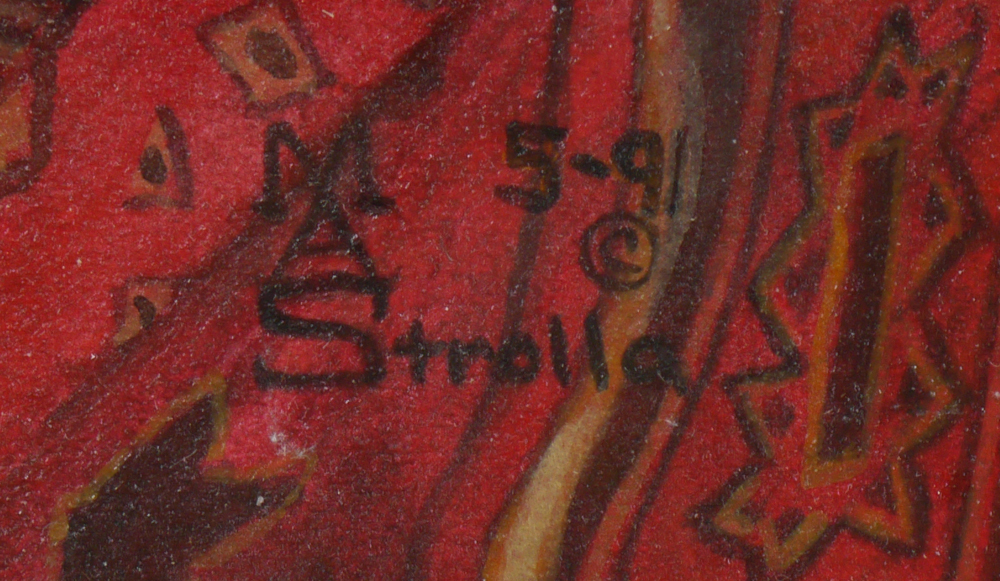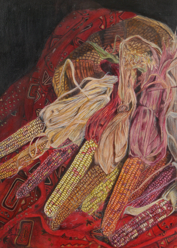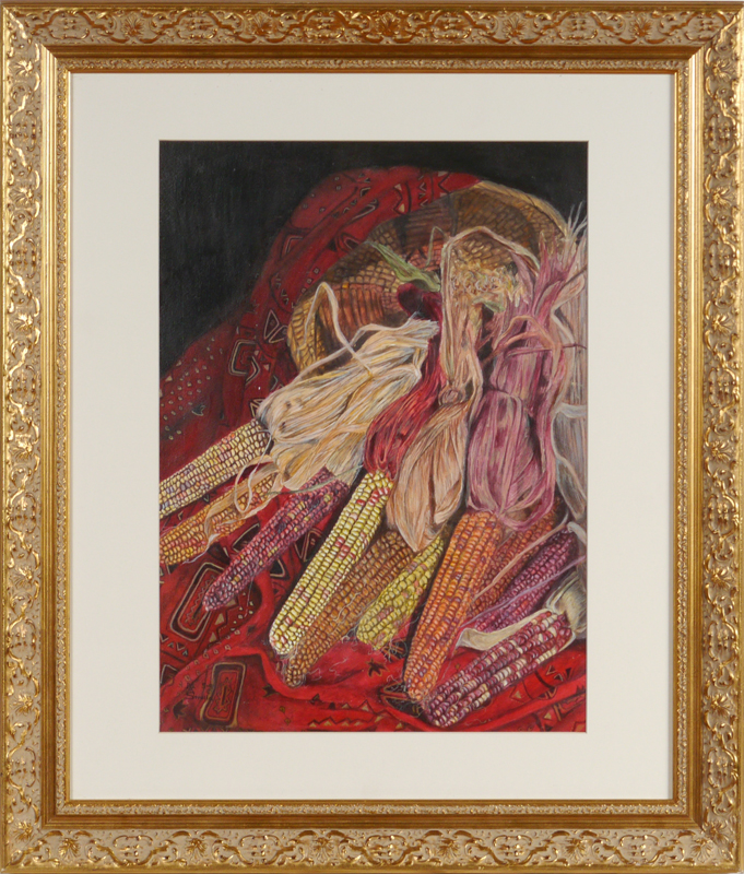 M.A. STROLLA DRAWING OF INDIAN CORN: Colored pencil, sight size 19'' x 13 3/4'', signed lower left and dated '91, framed, 28'' x 24''.