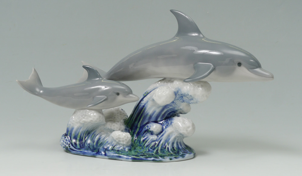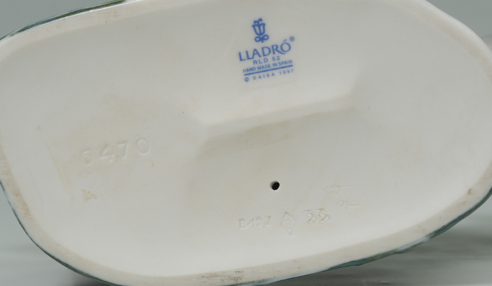 LLADRO PORCELAIN FIGURINE: A SWIMMING LESSON #6470, Francisco Catala sculptor, issued 1997 retired 2010, 6.25'' x 11''.