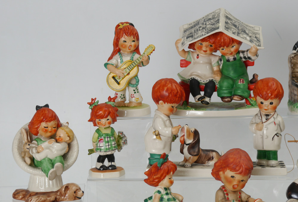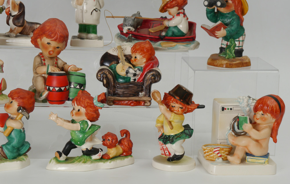 17 GOEBEL CHARLOT BYI RED HEAD FIGURINES: 17 pieces total, tallest boy chef cooking a steak figure measures 6 1/2'' h. x 4 1/4''.