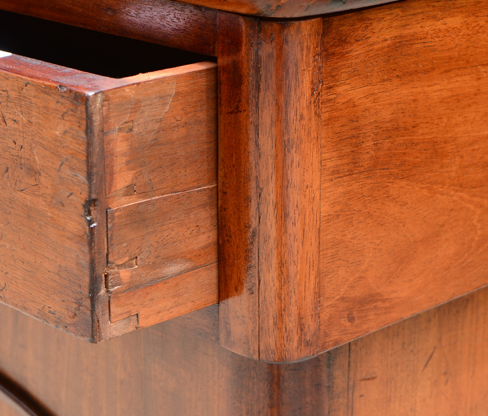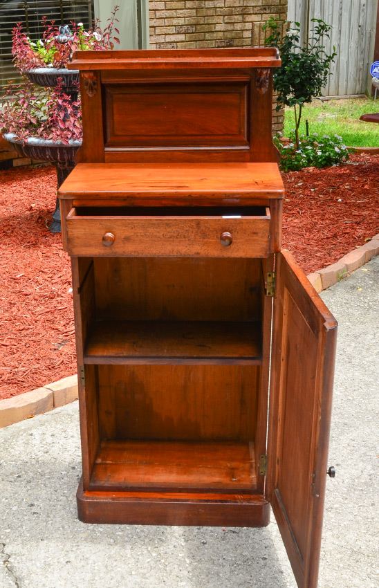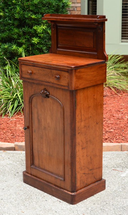 GEORGIAN WALNUT LECTERN: Shaped backsplash with upper shelf over single drawer over single door with shelf. 53'' h. x 23 3/4'' x 14 1/2''.