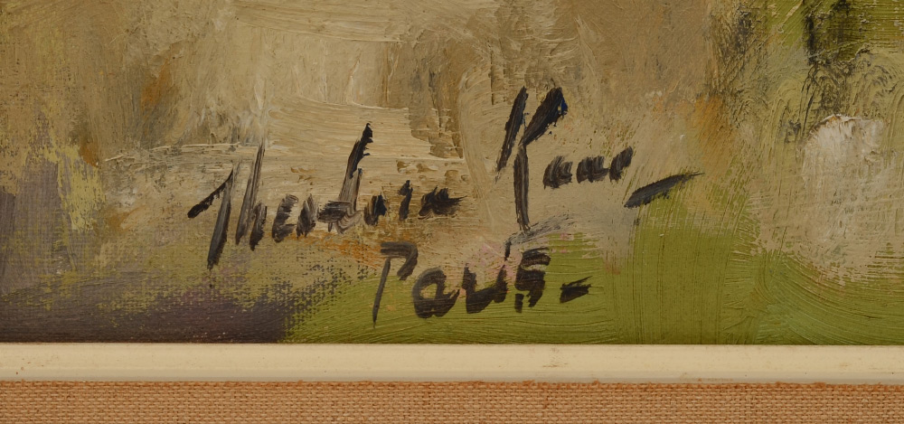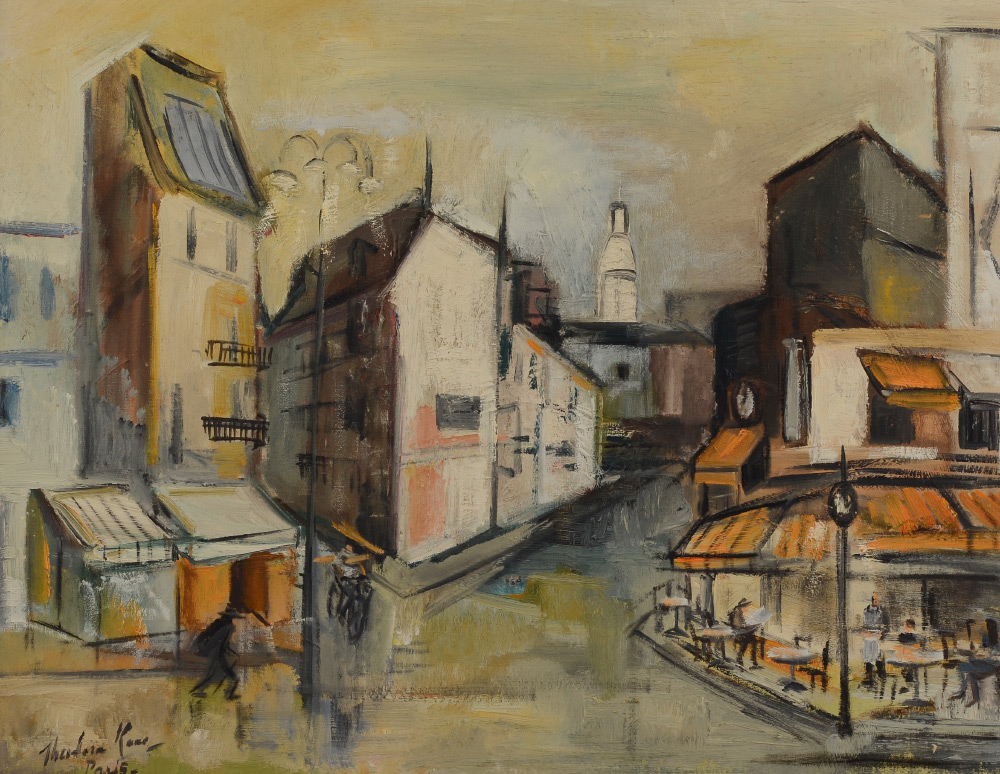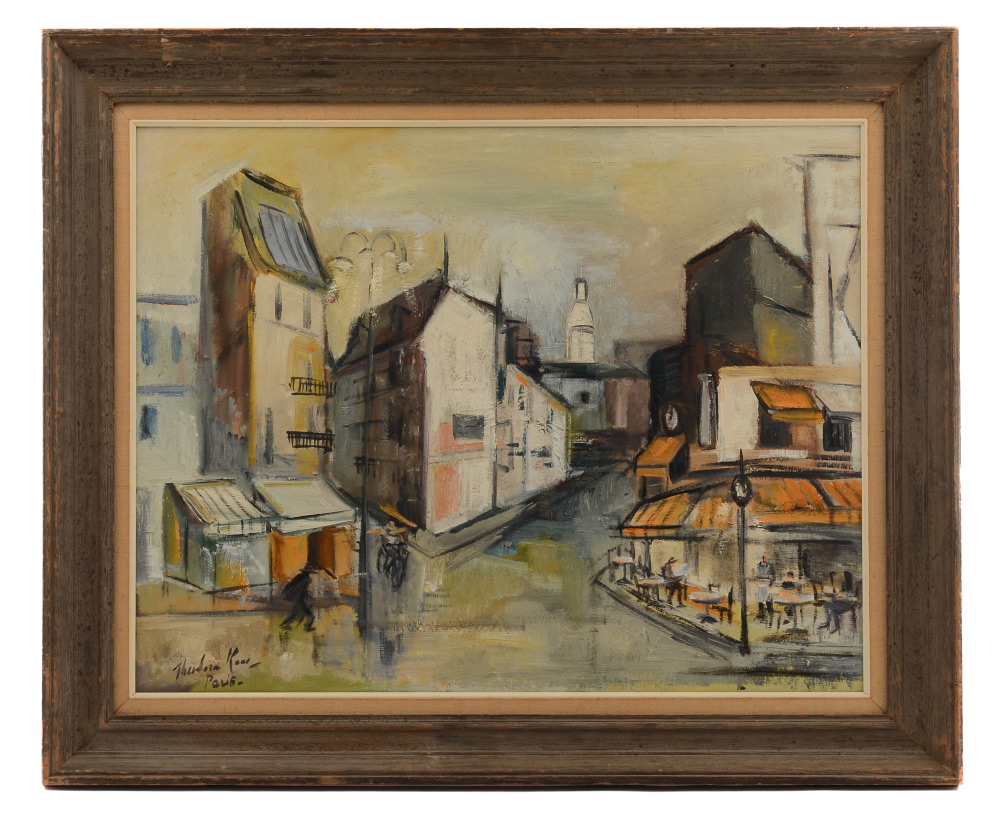 KANE, Theodora, (American, 1906-1977): Paris Street Scene, Oil/Canvasboard, sight size 21 1/4'' x 27 1/2'', signed and titled lower left, framed, 29'' x 34 1/2''.
