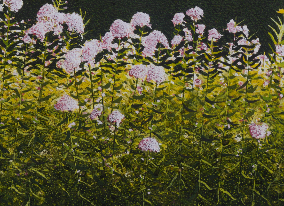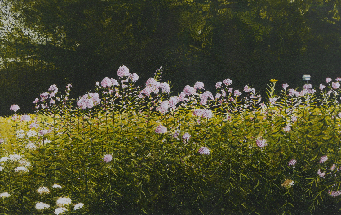AKERS, Gary, (American, 1951- ): Field of Phlox, Watercolor/Gouache/Board, sight size 12 1/2'' x 19 1/2'', signed upper right, custom gilt mold frame, 23 1/2'' x 30 1/2''.