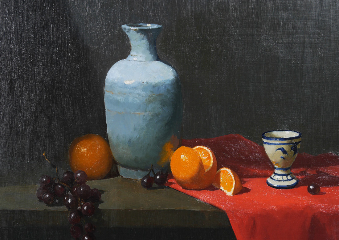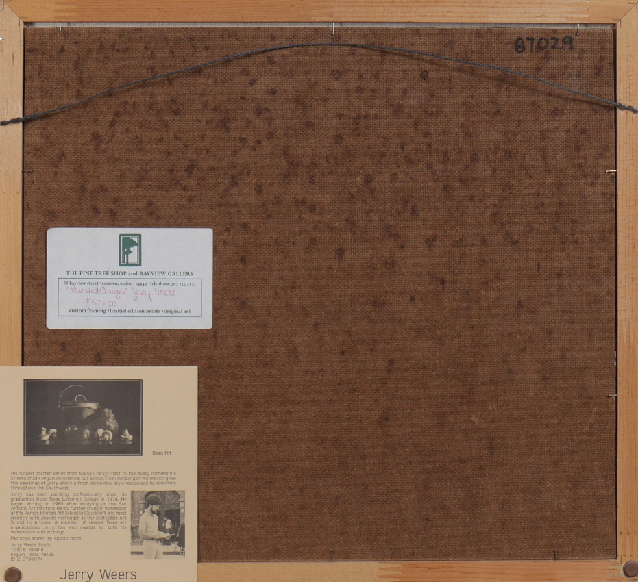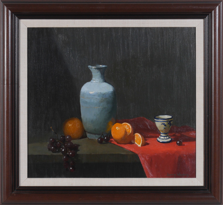 WEERS, Jerry, (American, 20th/21st Century): Still Life with Vase and Oranges, Oil/Panel, 16'' x 18'', signed.
