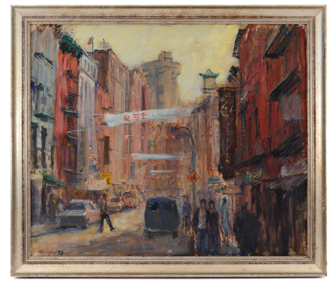 SPRINGER, Anthony, (American, 1928-1995): ''Chinatown'', Oil/Canvas, 20'' x 24'', signed lower left, Salmagundi auction label verso from 1985, framed, 23'' x 27''.