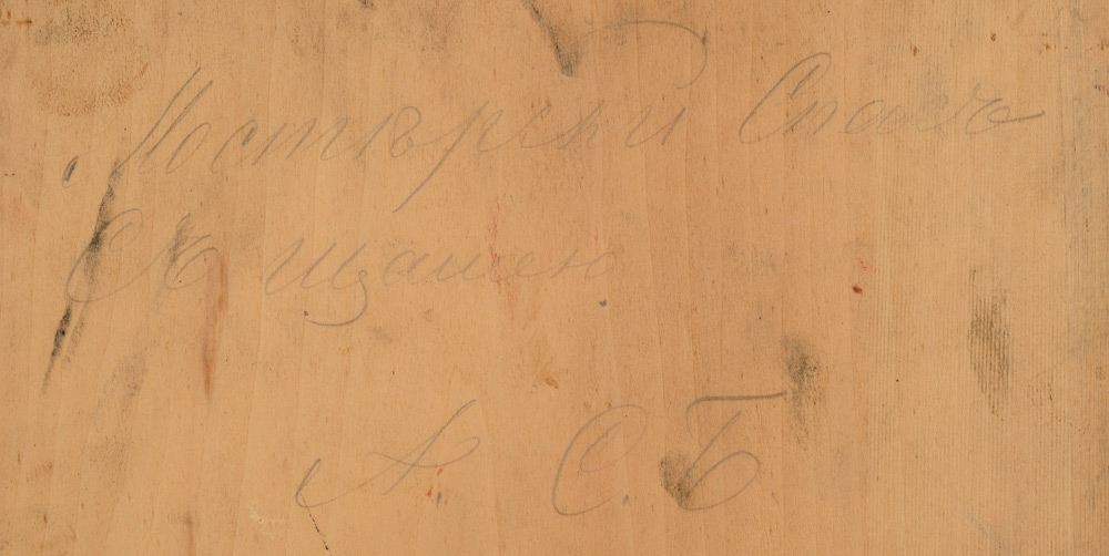CONDITION: Needs cleaning, several abrasion from rubbing, minor separation in wooden board, frame has wear, sold as is.