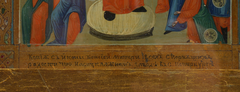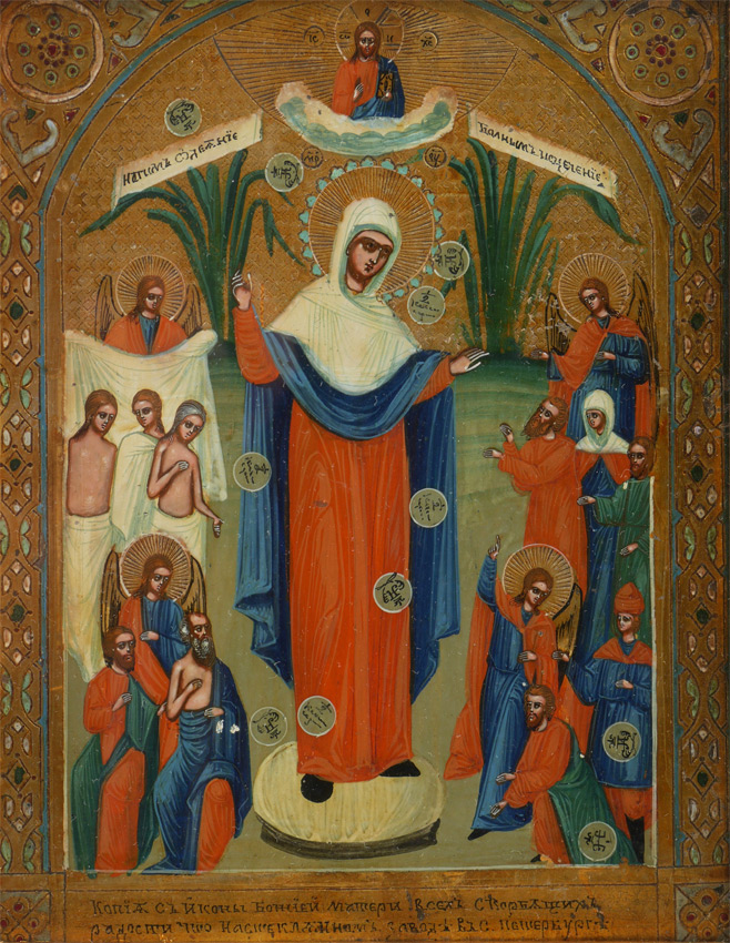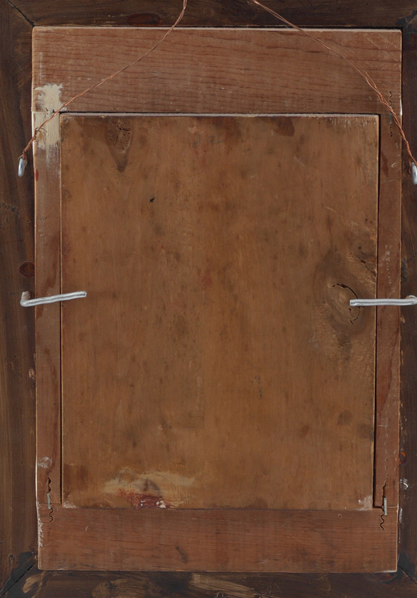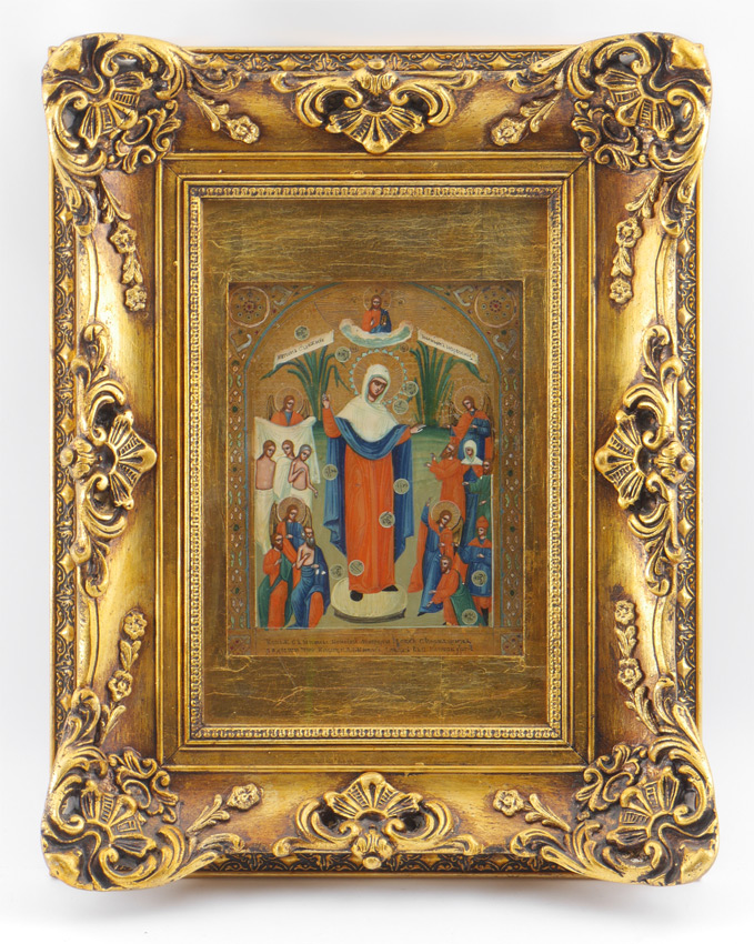 RUSSIAN? ICON PAINTING: Oil/Wood, 8 1/2'' x 6 3/4'', framed, 18 1/2'' x 14 1/4''.