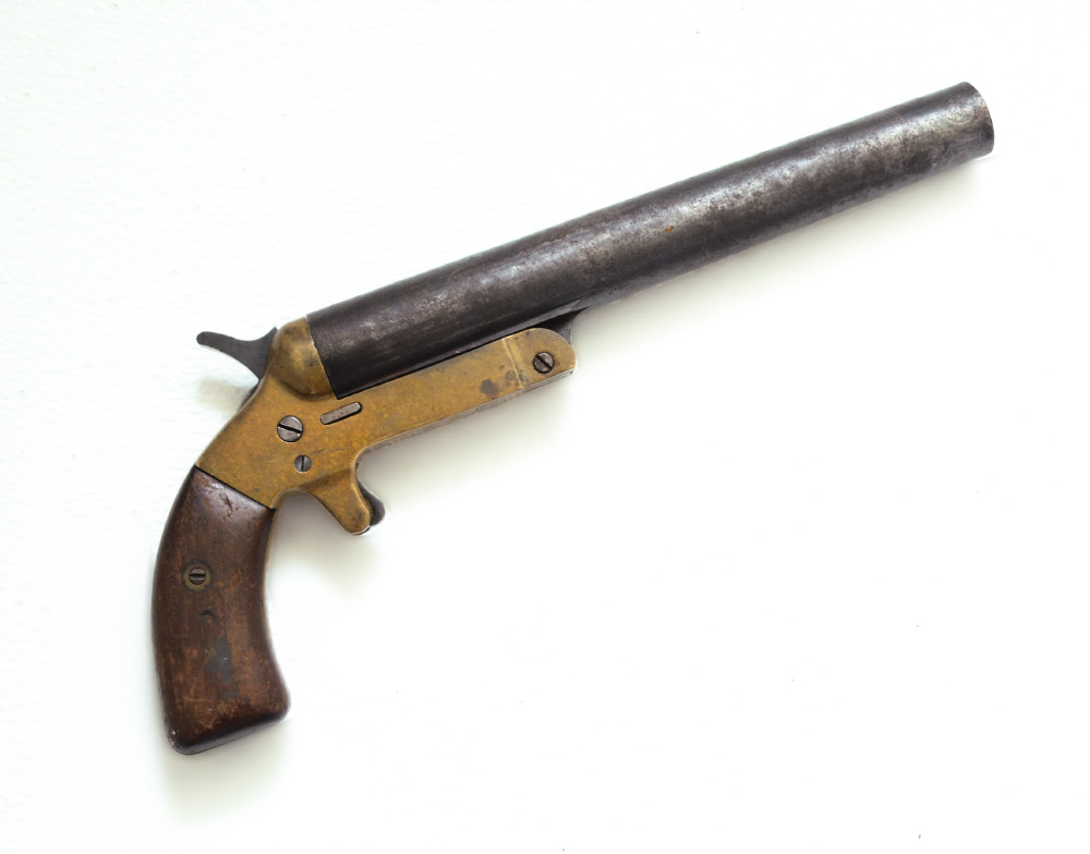REMINGTON MARK III FLARE GUN: Brass frame, 9'' barrel with typical Mark III Remington marks, wood grips, action working fine. Overall 12 1/4'' long.
