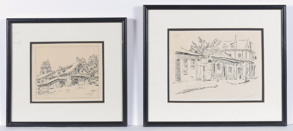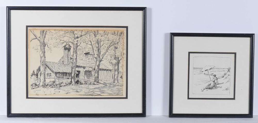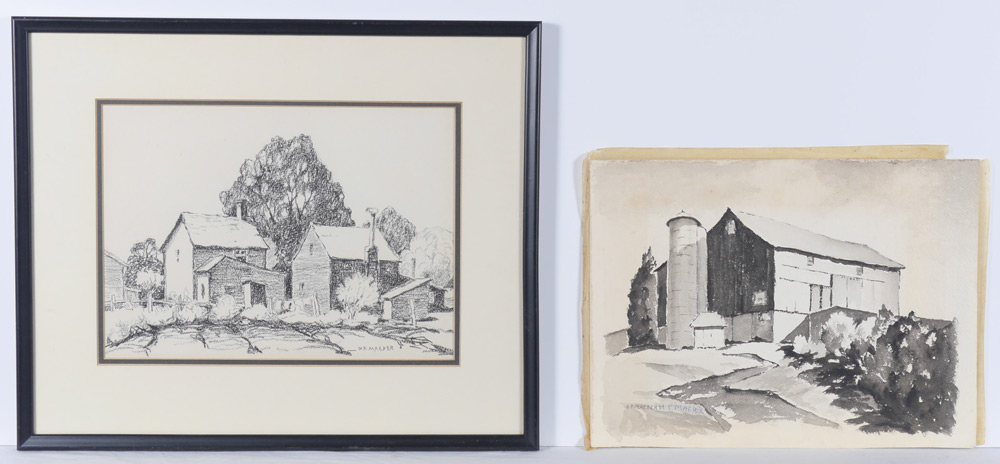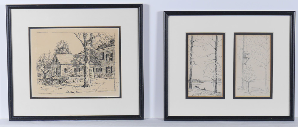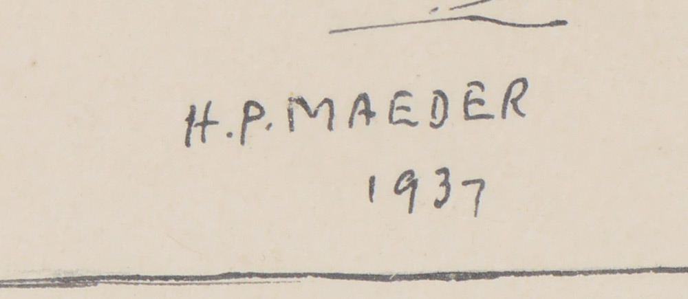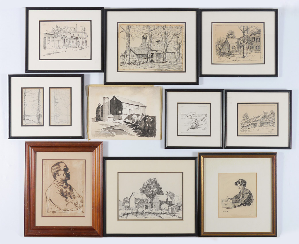 MAEDER, Howard Potter, (American, 1886-1983): Lot of 10 Maeder artworks, many signed, to include pen and ink drawings, etchings and prints from the Howard P. Maeder Sr. Family Estate