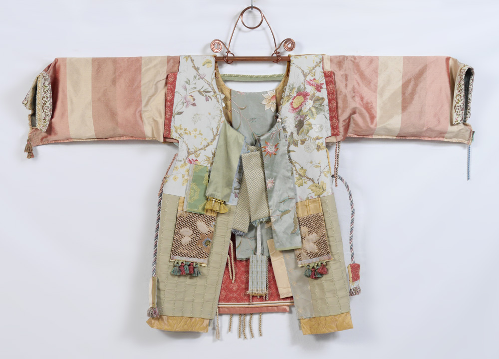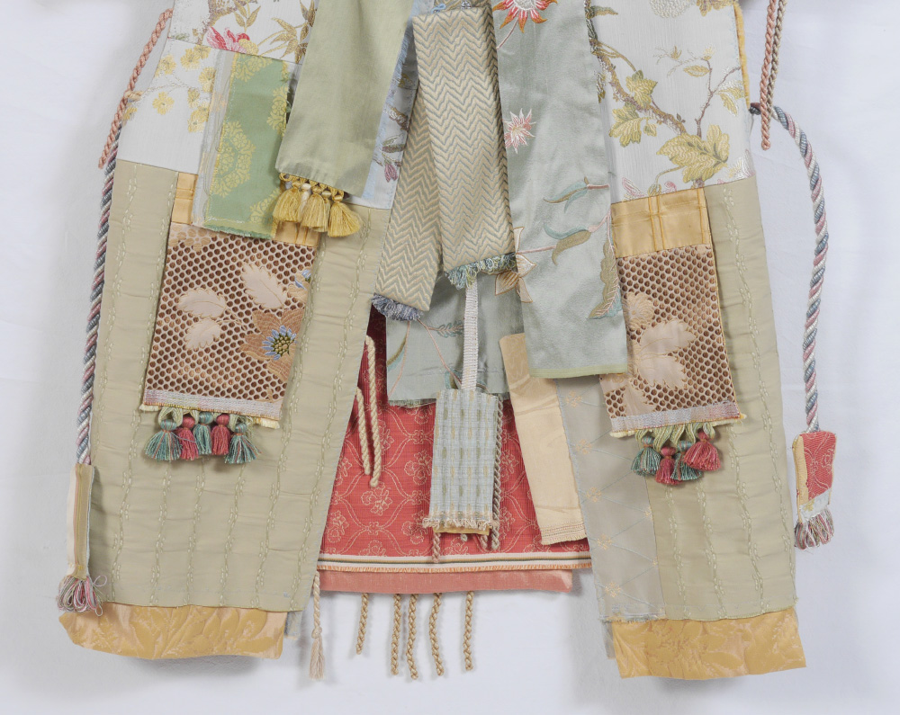MARLENE HAUSNER ''CUT AND PASTE'' WEARABLE ART JACKET: Referred to by the artist as JAX. Luxurious collage of silks in a dramatic blending of textures, patterns, and color. Measures approx. 35'' l. x 58''