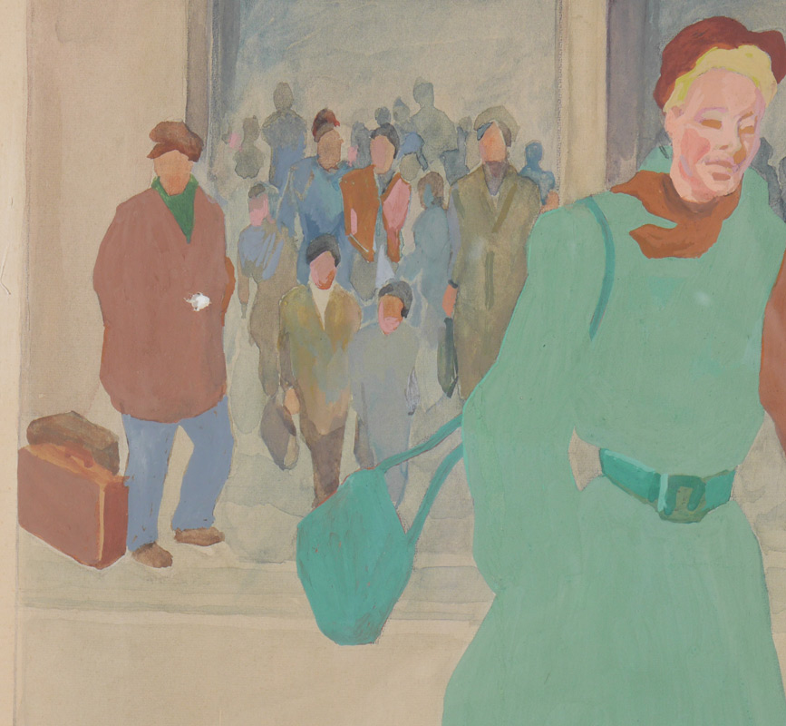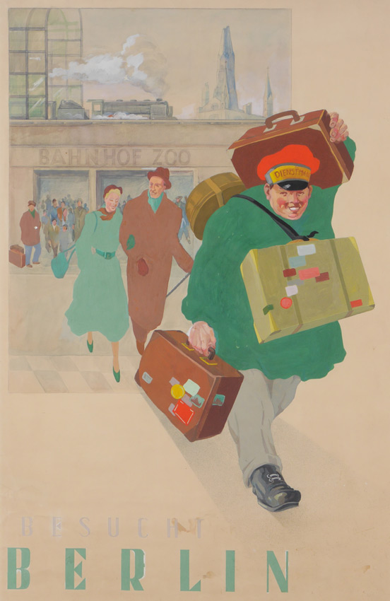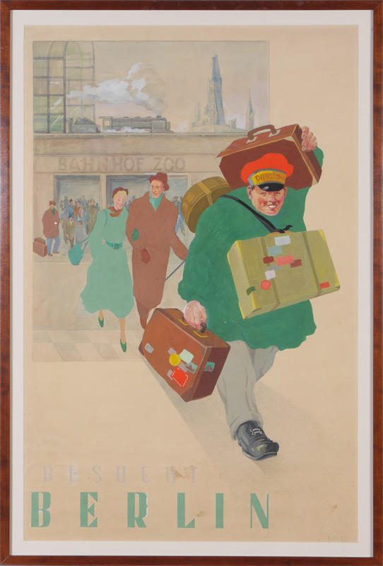 ORIGINAL ILLUSTRATION FOR BAHNHOF ZOO POSTER BY WENZEL: Illustration, sight size 38'' x 24 1/2'', signed lower right, fine framing, 42'' x 28 1/4''.