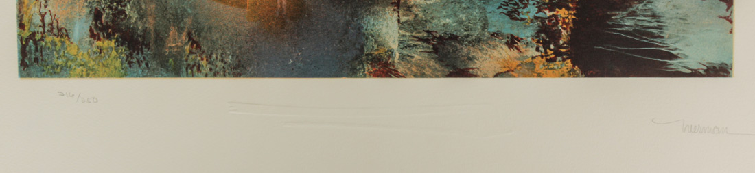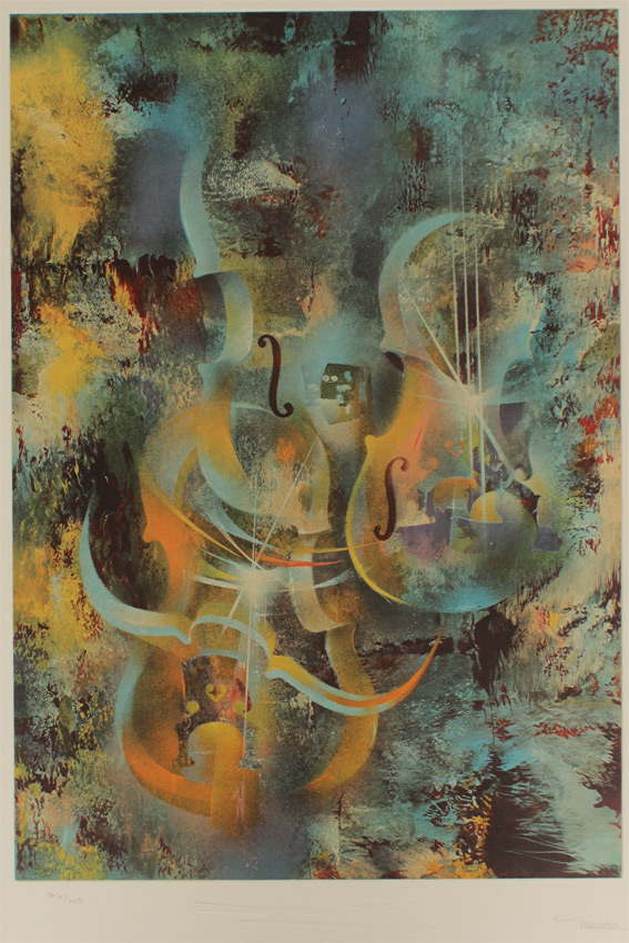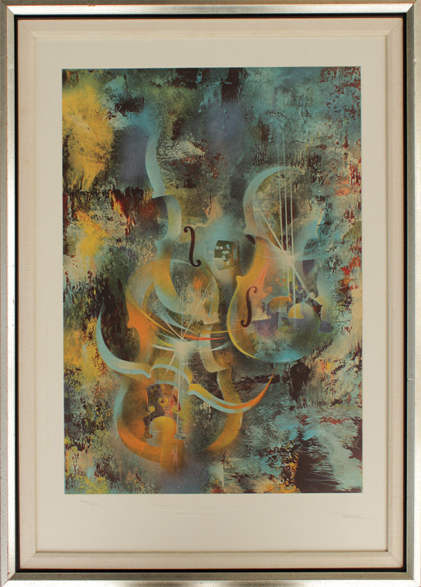NIERMAN, Leonardo (Mexican, 1932- ): ''Ravel'', Lithograph, sight size 29'' x 21 1/4'', pencil signed lower right, numbered 216 of 250 lower left, silver gilt frame, 33'' x 25 1/4''.