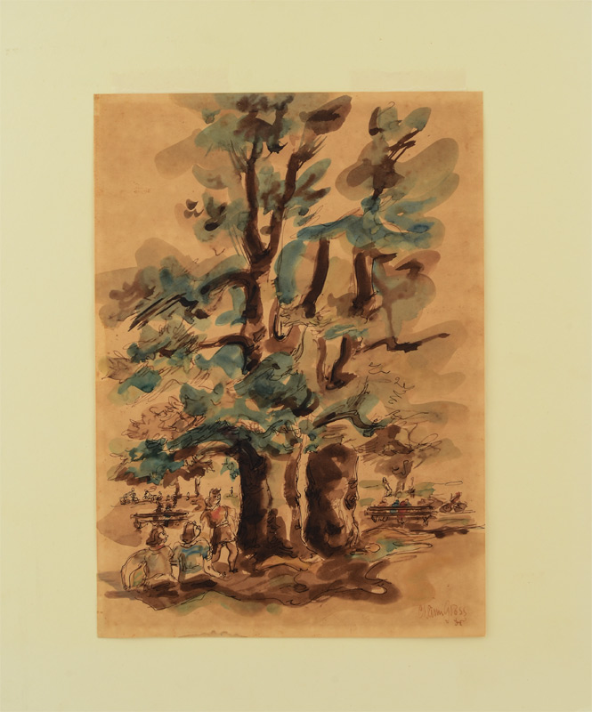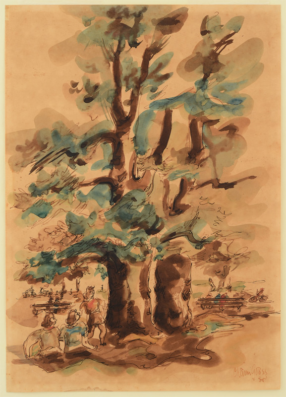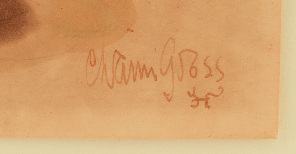 GROSS, Chaim, (American, 1904-1991): Park Scene with Figures, Watercolor, 14'' x 10'', signed lower right, unframed, hinge-mounted to backboard, overall measurement 18 1/2'' x 15 1/2''.