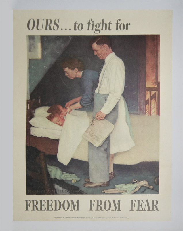 NORMAN ROCKWELL FREEDOM FROM FEAR WWII POSTER: From the 4 Freedoms series, OWI poster number 46, 28'' x 20'', backed with linen, 31'' x 23 1/4''.