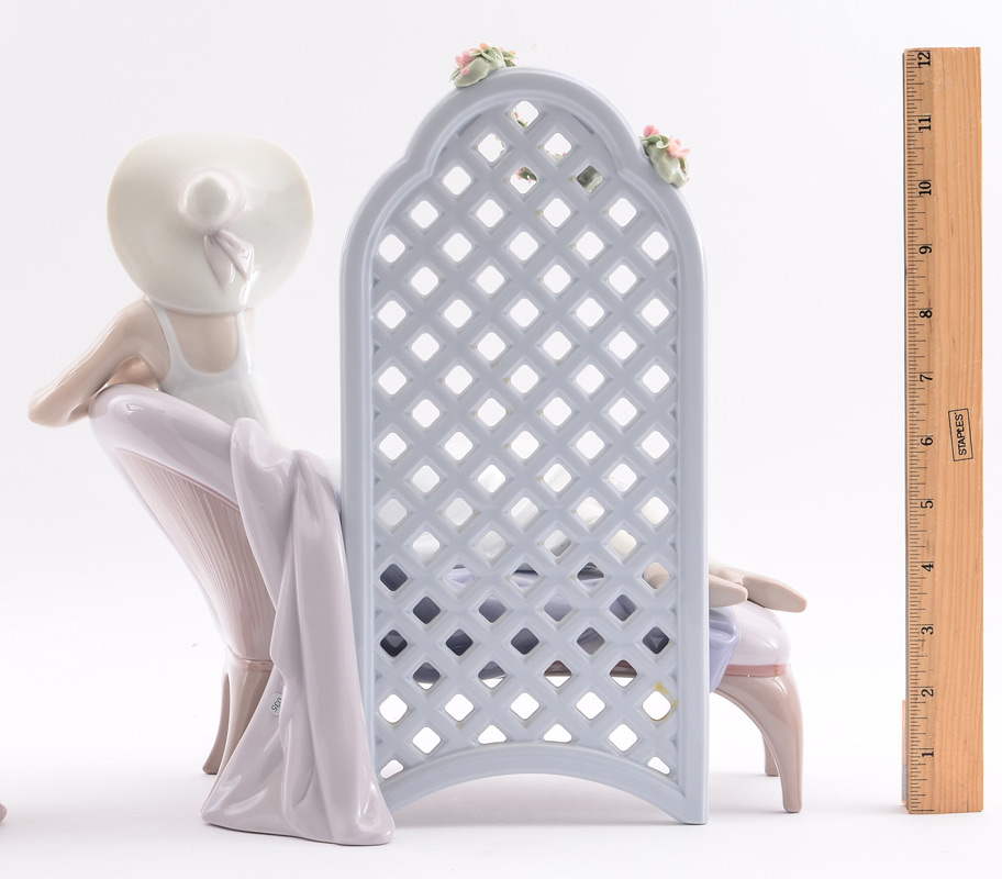 LLADRO PORCELAIN LE FIGURINE ''GARDEN DREAMS'': #7634, Limited Edition #3336/4000, Jose Puche sculptor, Angeles Cabo decorator, issued 1994 retired 1996, glazed finish, marked and signed on bottom, also inscribed Specially Made for David Murray. Overall 12.25''h. x 14'' x 7''.