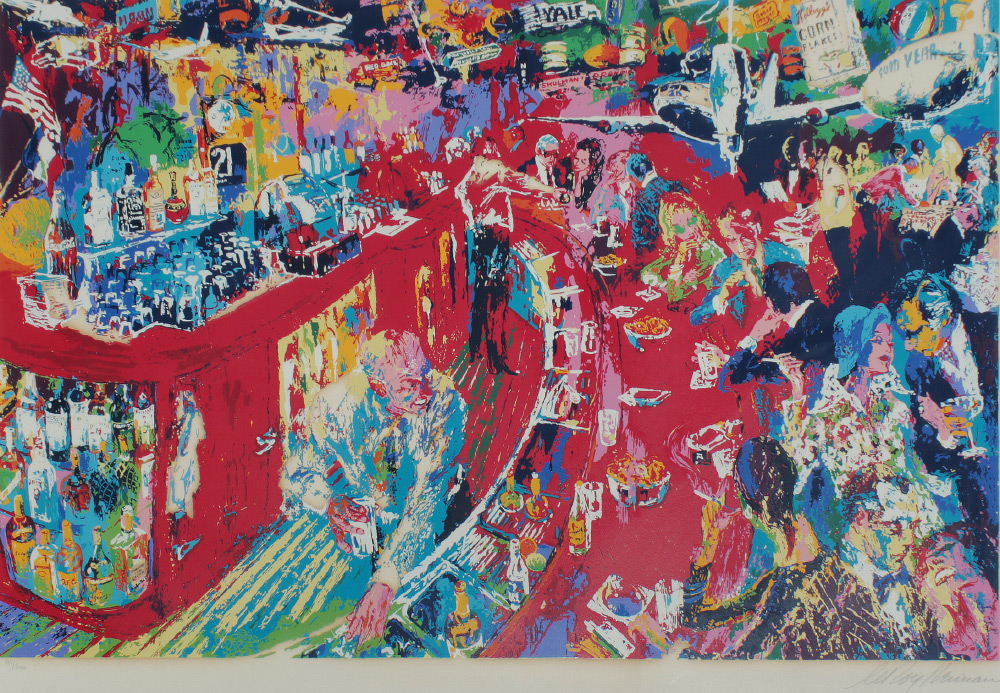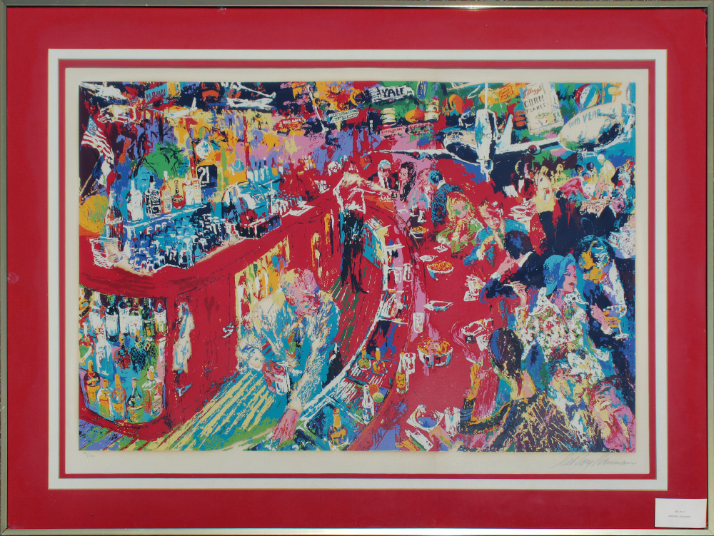 NEIMAN, LeRoy, (American, 1921-2012): ''Bar at 21'', Serigraph, sight size 28 1/2'' x 40 1/2'', pencil signed lower right, numbered 99 of 300 lower left, custom frame and matting, 37'' x 49 1/2''.
