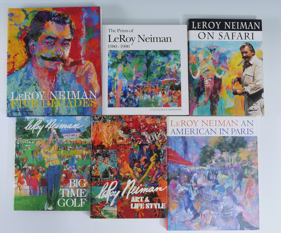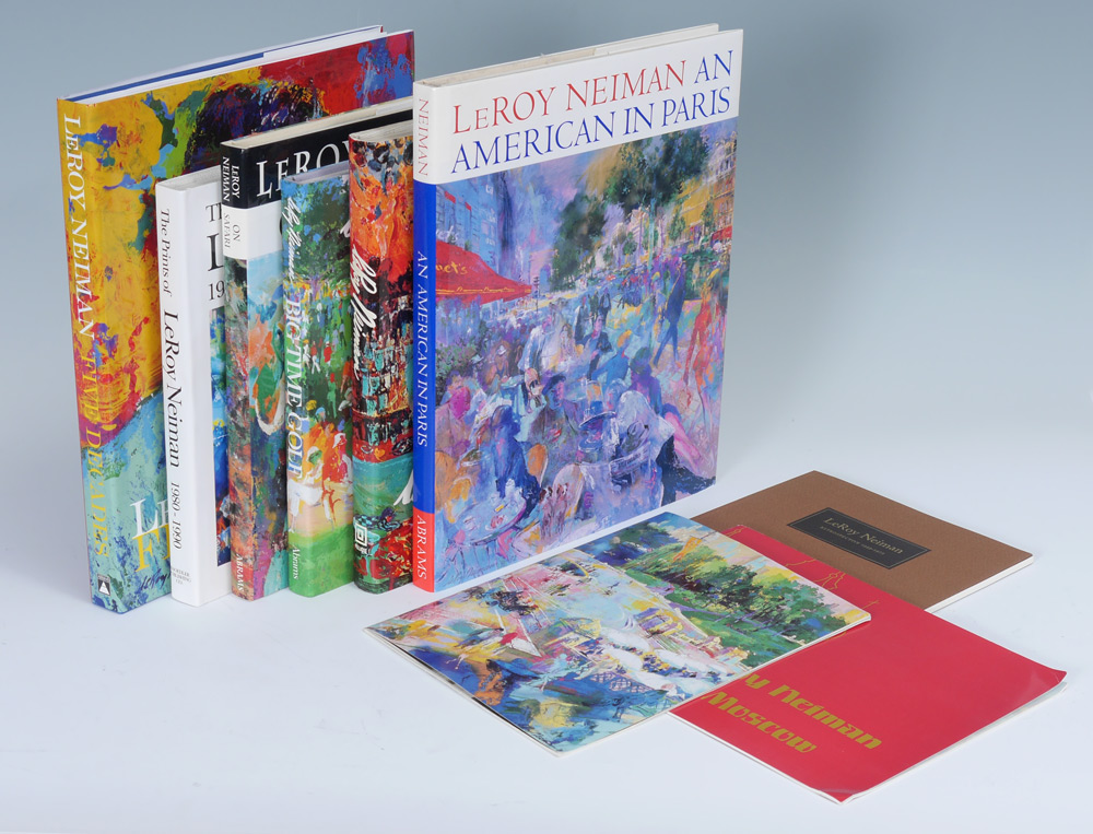 9 LEROY NEIMAN ART BOOKS 5 SIGNED: Titles include ''LeRoy Neiman: Five Decades'', ''LeRoy Neiman in Moscow'', ''Salute to Central Park'', and ''Retrospective'', titles of the signed books include ''Big Time Golf'', ''The Prints of LeRoy Neiman'', ''LeRoy Neiman on Safari'', ''LeRoy Neiman: Art and Lifestyle'', ''LeRoy Neiman: An American in Paris''.