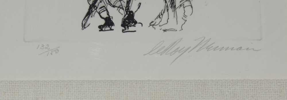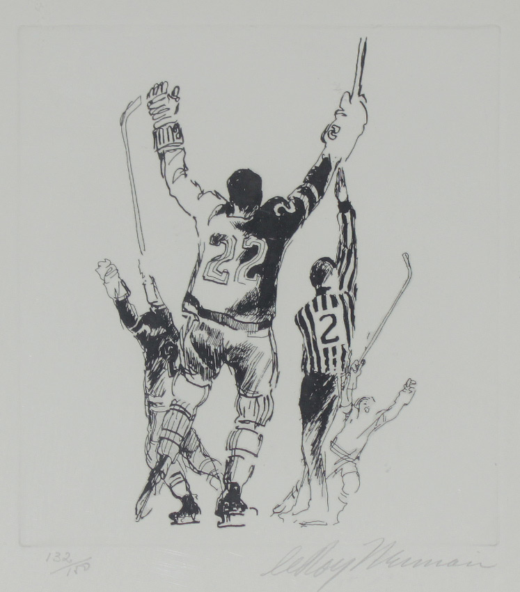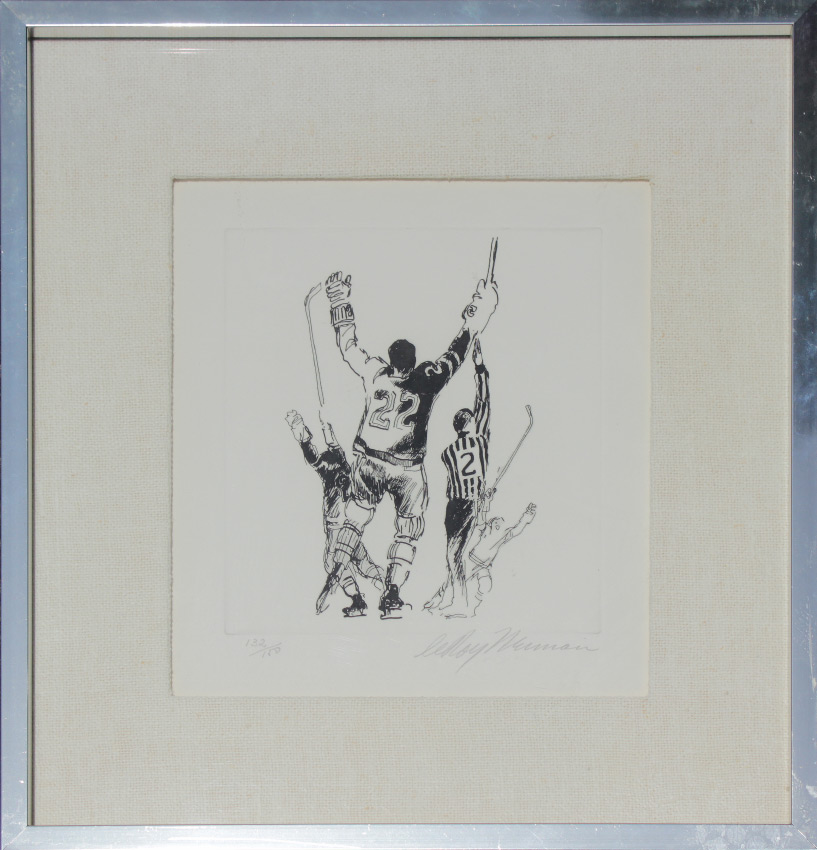 NEIMAN, LeRoy, (American, 1921-2012): Hockey Scene, Etching, sight size 10 1/2'' x 9 1/4'', pencil signed lower right, numbered 132 of 150 lower left, metal frame, 17'' x 16''.