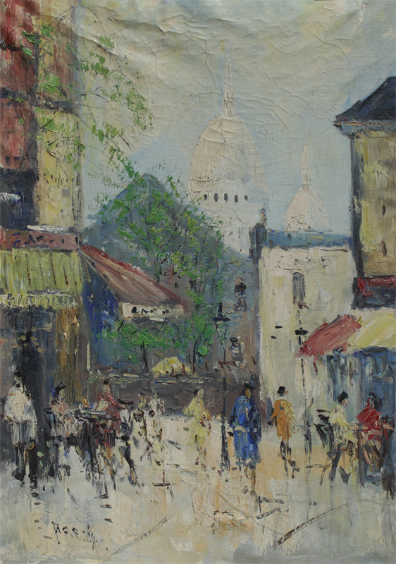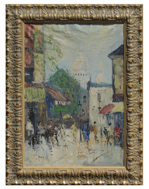 EUROPEAN STREET SCENE PAINTING SIGNED PARISI?: Oil/Canvas, 27 1/2'' x 19 1/2'', signed lower left, gilded and carved frame, 34'' x 26''.