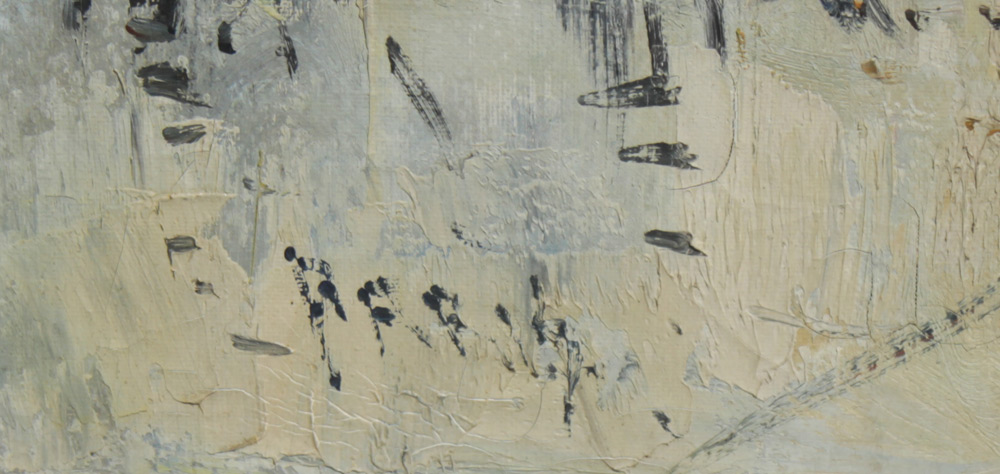 CONDITION: Cracquelure throughout, needs cleaning, several abrasions, puncture in lower mid margin. Sold as is.