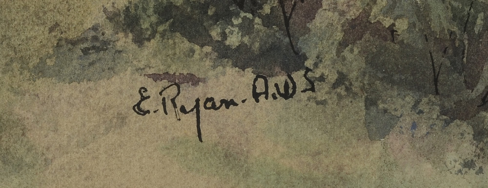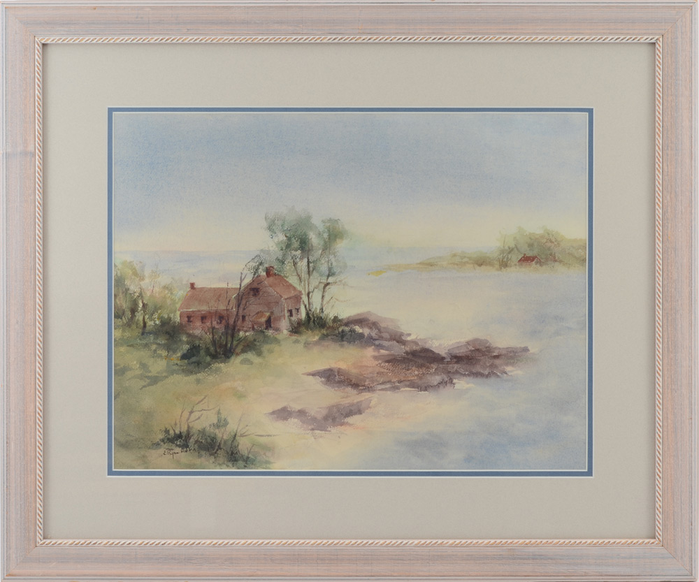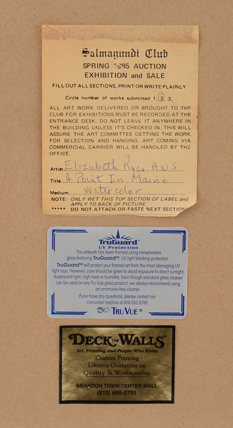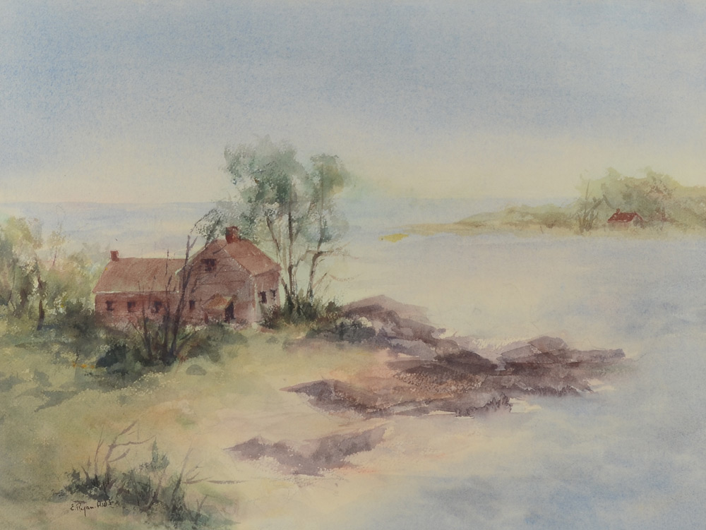 RYAN, Elizabeth, (American, 20th Century): ''A Point in Maine'', Watercolor, sight size 14'' x 18 1/4'', signed lower right, Salmagundi 1985 Spring Auction label verso, framed, 22 1/2'' x 27 1/2''.
