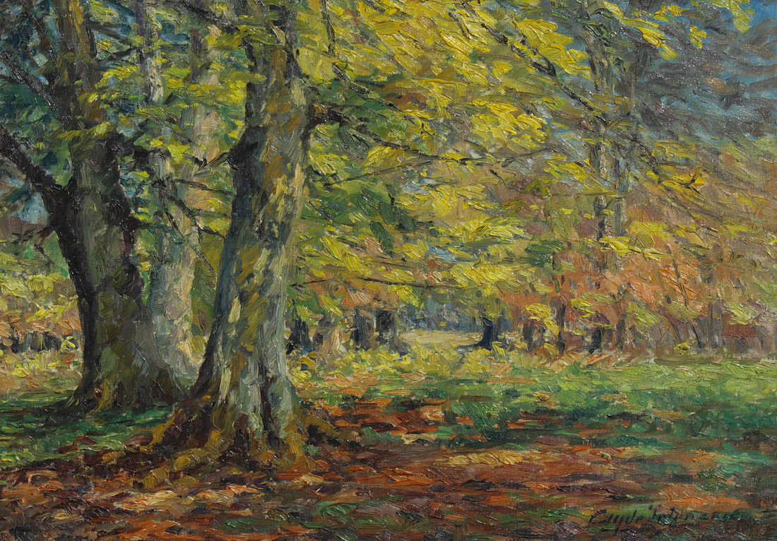 PETERSEN, Hans Gyde, (Danish, 1862-1943): Autumnal Forest Scene, Oil/Canvas, sight size 20'' x 28'', signed lower right, framed, 26 3/4'' x 34 3/4''.
