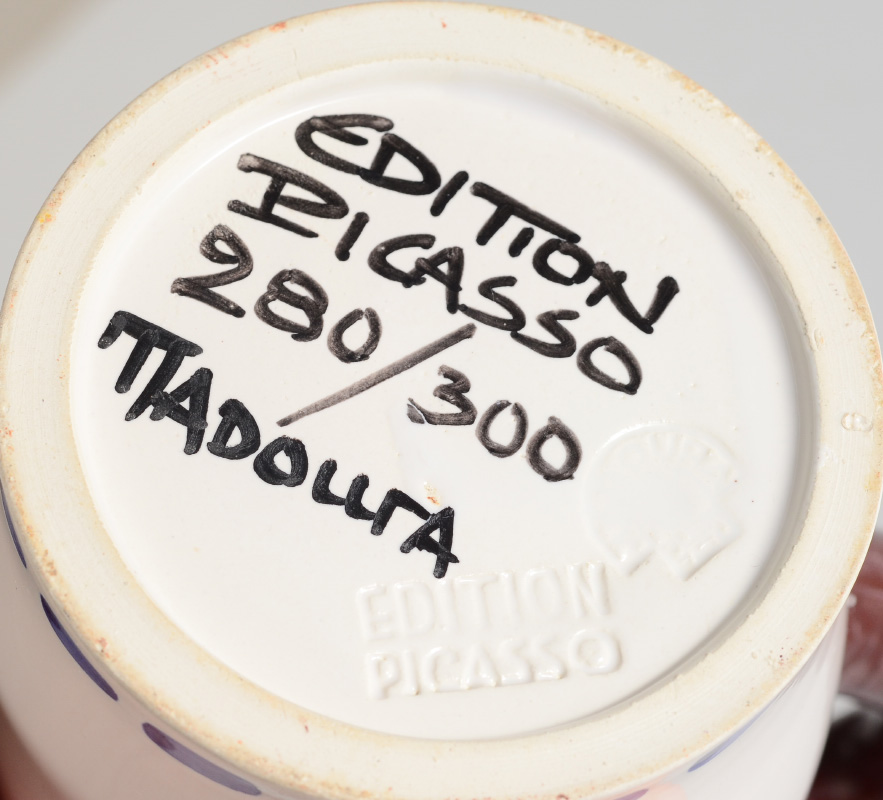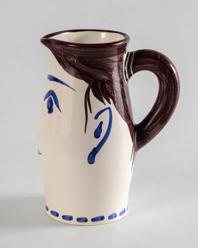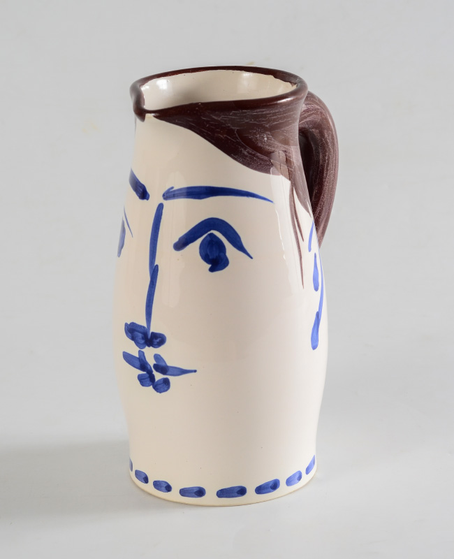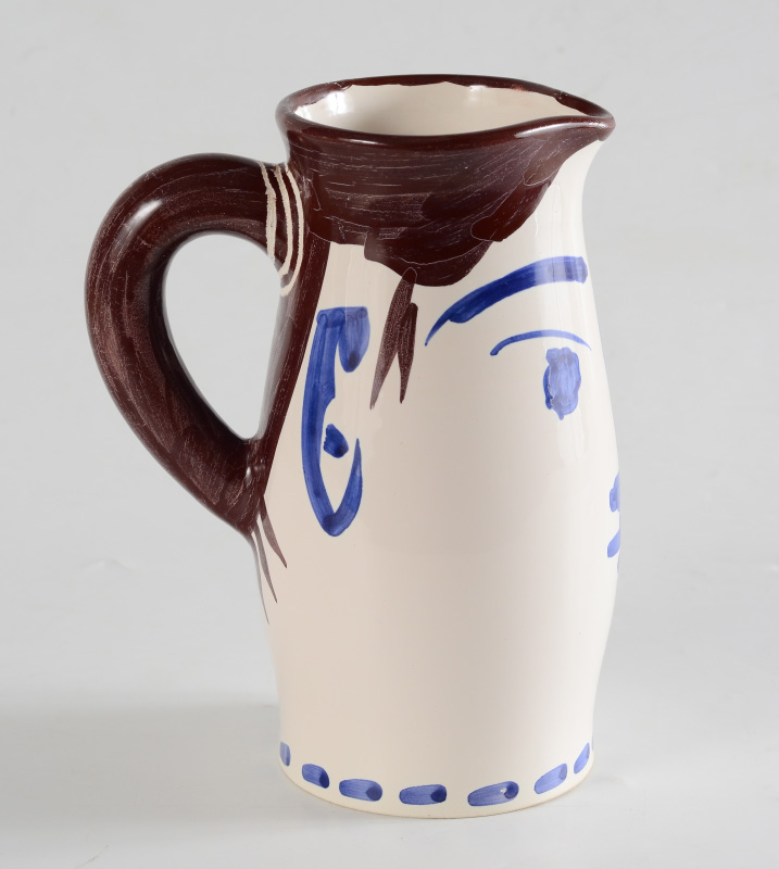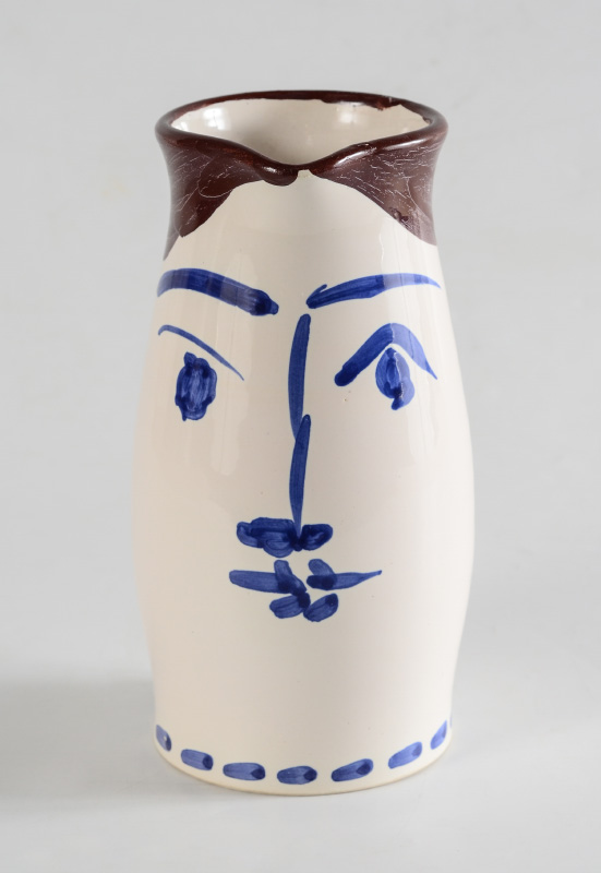 PICASSO, Pablo, (Spanish, 1881-1973): ''Face Tankard'', glazed ceramic pitcher, marked ''Edition Picasso, 280/300, Madoura'', impressed Edition Picasso stamp, partial Plein Feu Madoura stamp. 8 1/8'' h. x 6 3/4''.