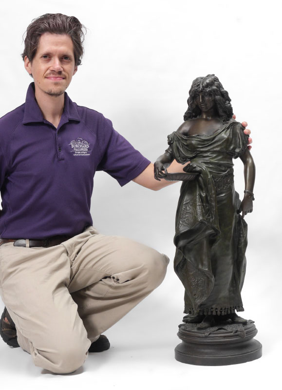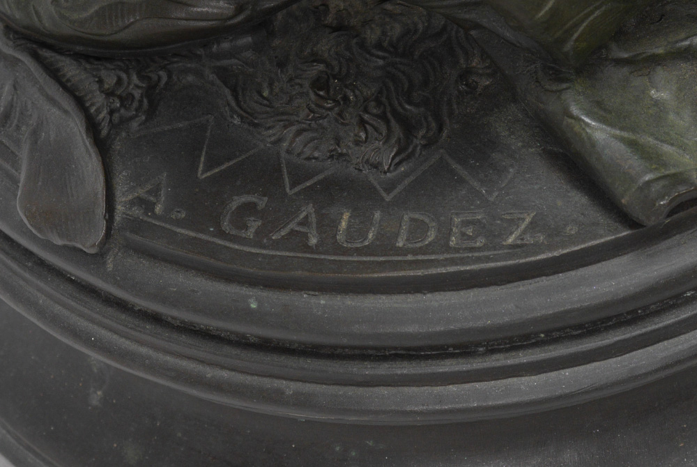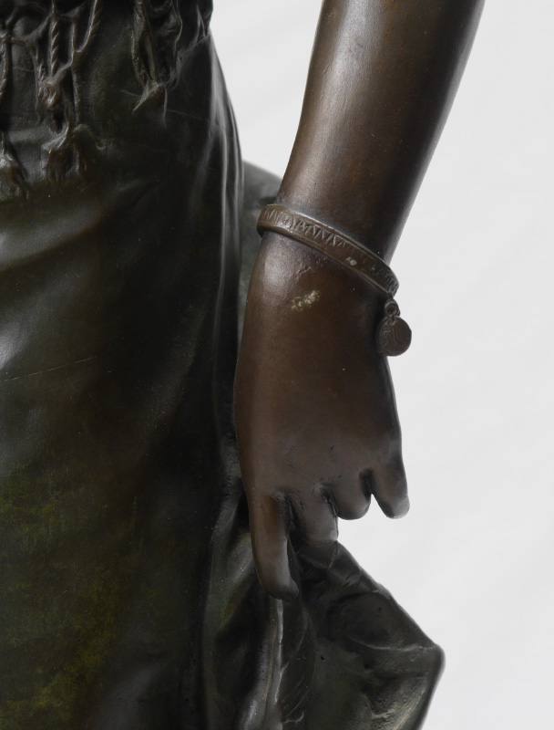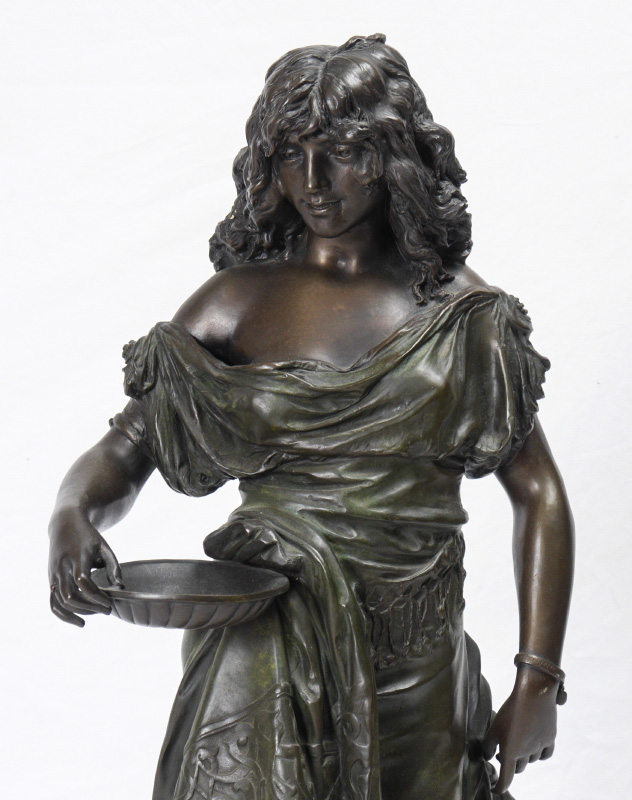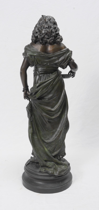 GAUDEZ, Adrien Etienne, (French, 1845-1902): Woman with a basket, Bronze sculpture, signed on base, 34.5'' x 12.5'' x 9'' approx.