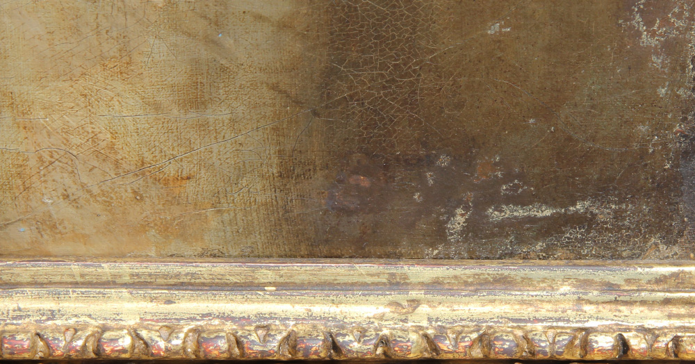 CONDITION: Older reline, scattered craquelure throughout with flecking and inpaint.