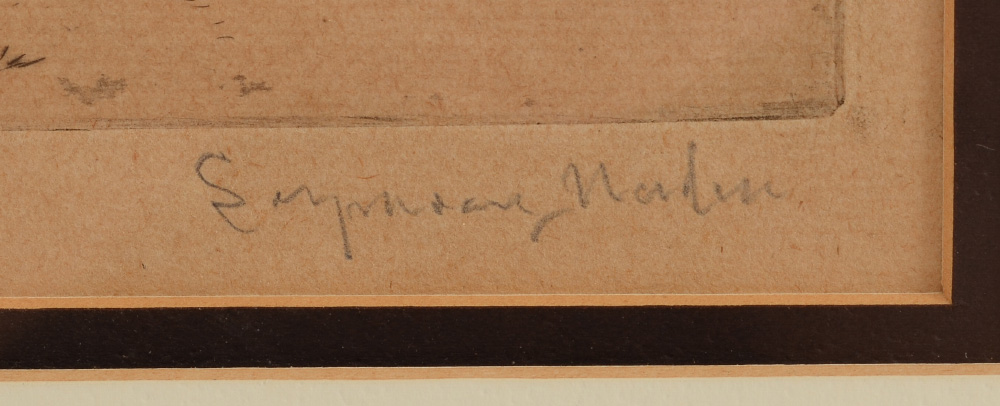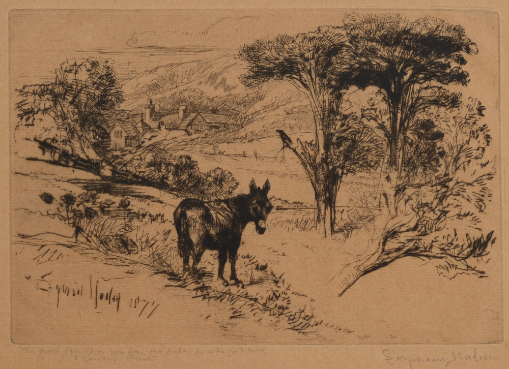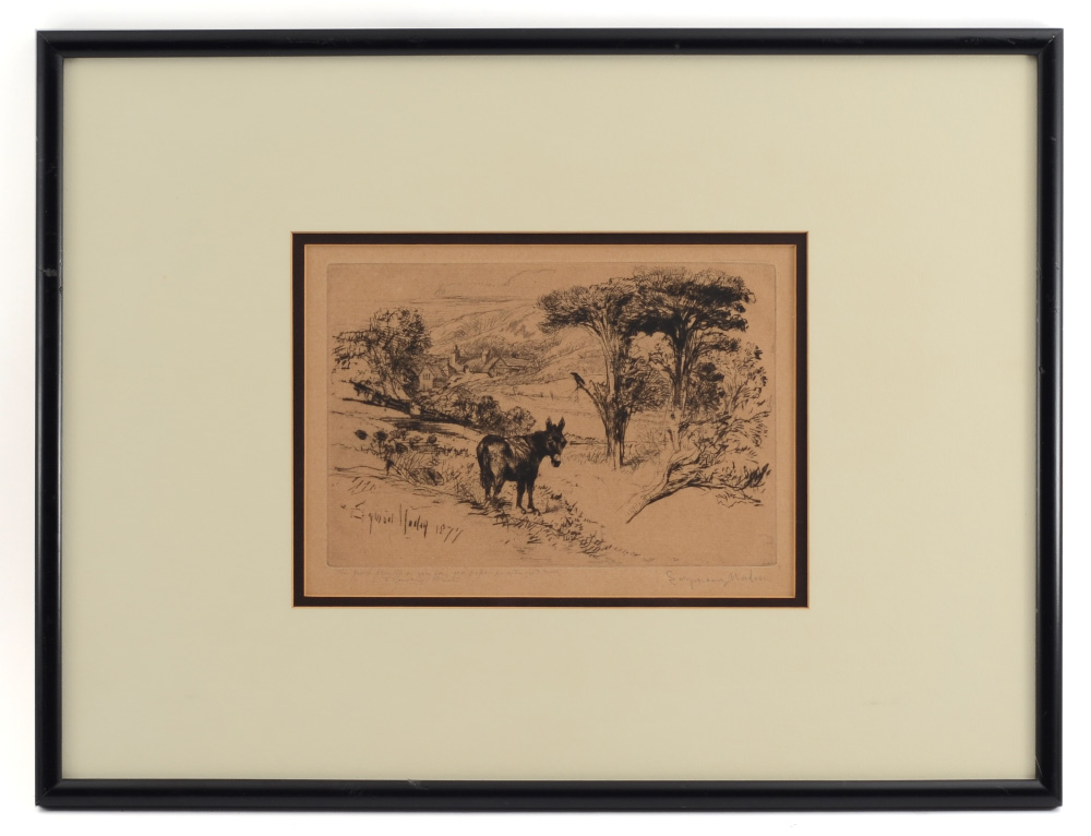 HADEN, Francis Seymour, (British, 1818-1910): ''Challow Farm'', Etching, 6 3/4'' x 9 1/2'', pencil signed lower right, inscription reads ''This proof printed on very fine old paper - an extra good proof.'', signed by the printer, black frame, 15'' x 20'', original label affixed verso.