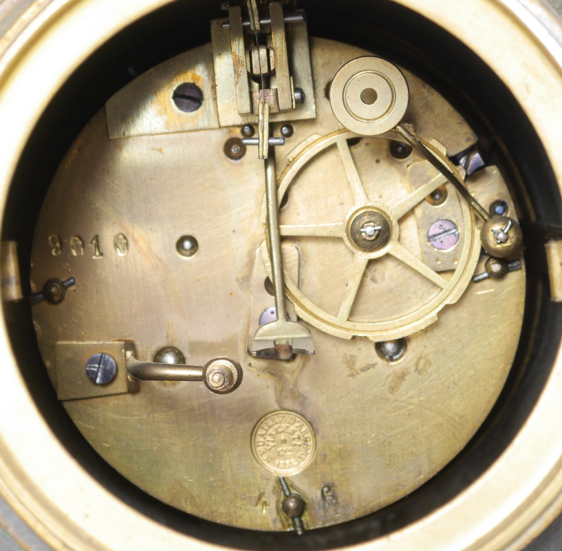 CONDITION: Minor chips back corner of marble, missing hand, no key or pendulum so unable to determine working condition.