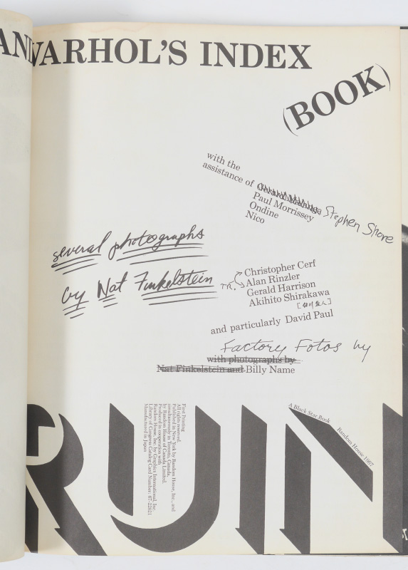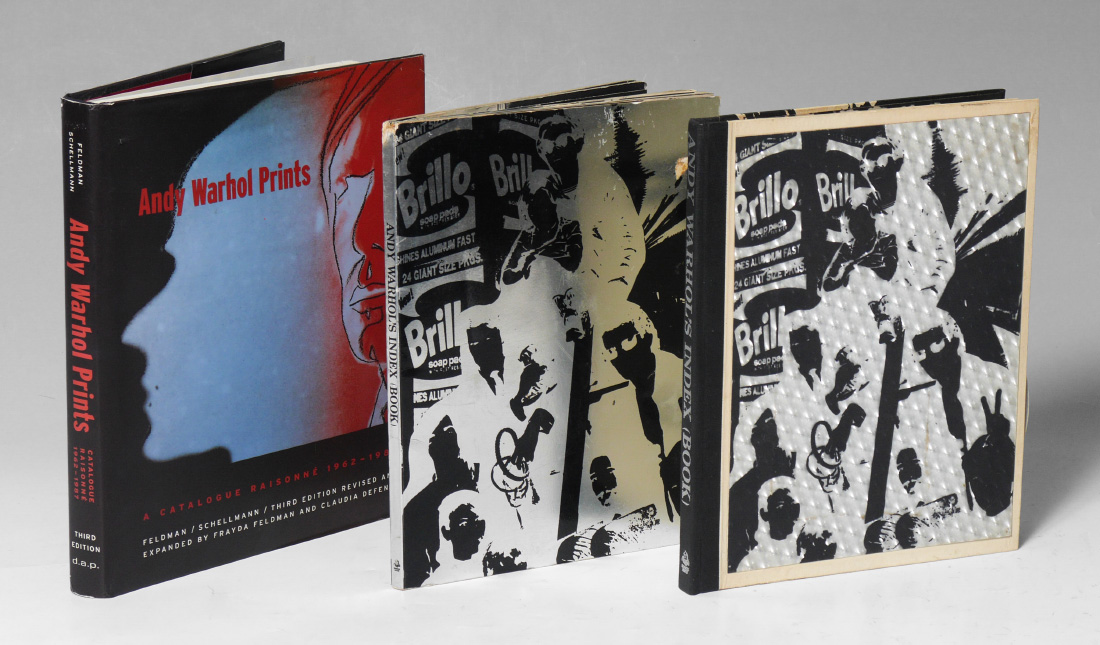 HARDCOVER & SOFTCOVER ANDY WARHOL'S INDEX BOOKS: 3 books total to include 1) 1967 First Edition, ''Andy Warhol's Index Book'', hardcover with Rowlux 3-D cover, all pop ups and fold outs present, loose Lou Reed photographic paper record. 11 1/4'' x 8 3/4''. 2) Identical to #1 however soft cover edition. Several loose pages and appears to be missing some pages, has loose Lou Reed record. 3) ''Andy Warhol Prints, A Catalogue Raisonne, 1962-1987'', by Feldman/Schellmann, 3rd Edition, 1997, published by D.A.P.