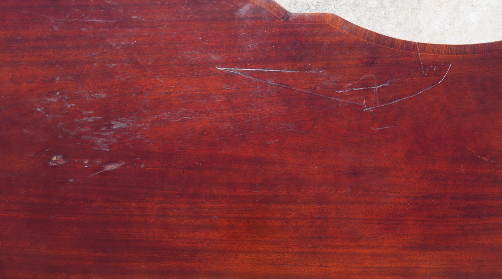 CONDITION: Chips to veneer, scratches to top, other wear consistent with age and use.