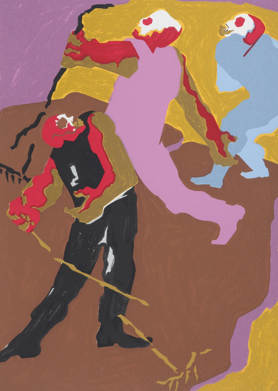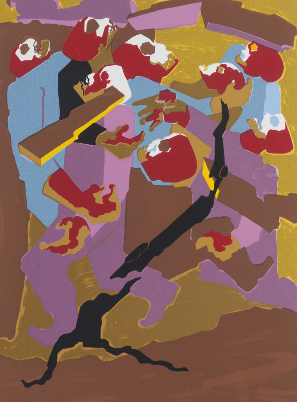 LAWRENCE, Jacob, (American, 1917-2000): 8 silkscreens in the book ''Hiroshima'' by John Hersey with original poem by Robert Penn Warren, published 1983 by The Limited Editions Club, signed by Lawrence, Hersey and Warren on back page, numbered 1040. Sold with original slipcase, 13 1/2'' x 10 1/4'' x 1 3/8''.
