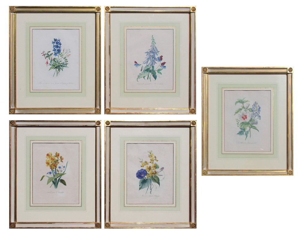 CHAZAL, Antoine, (French, 1793-1854): 5 Botanical Engravings, from the Flore Pittoresque printed in color and finished by hand in 1825 according to the label verso, finely framed, Donald Heald Fine Art label verso, Artwork for Ritz-Carlton Amelia Island, overall measurements for each piece 22 1/4'' x 18 3/4''.