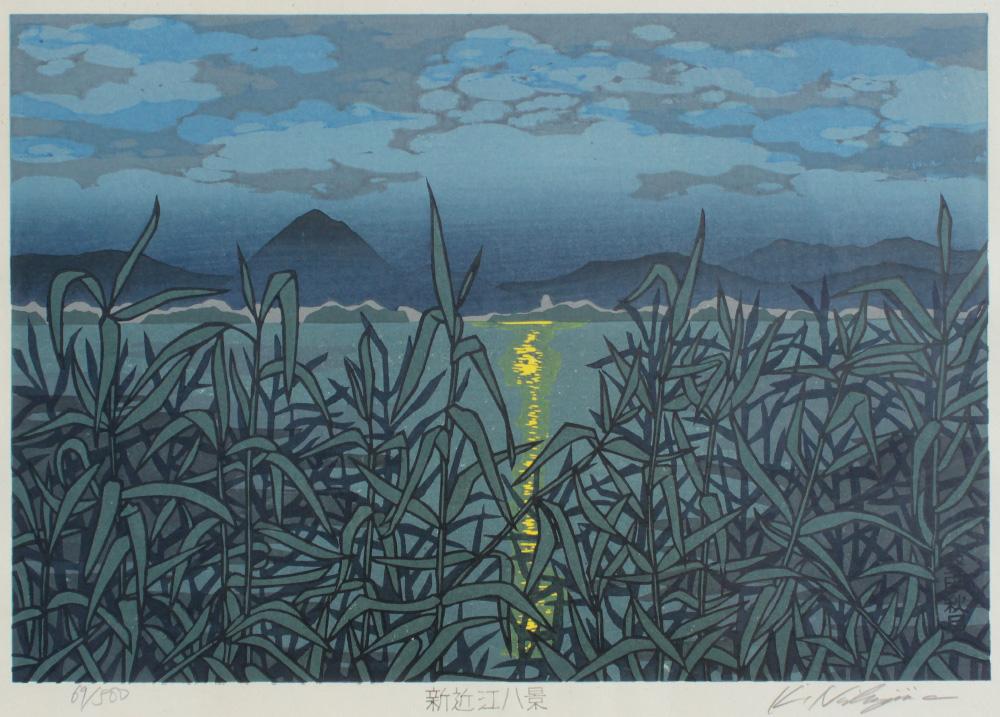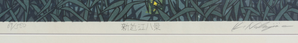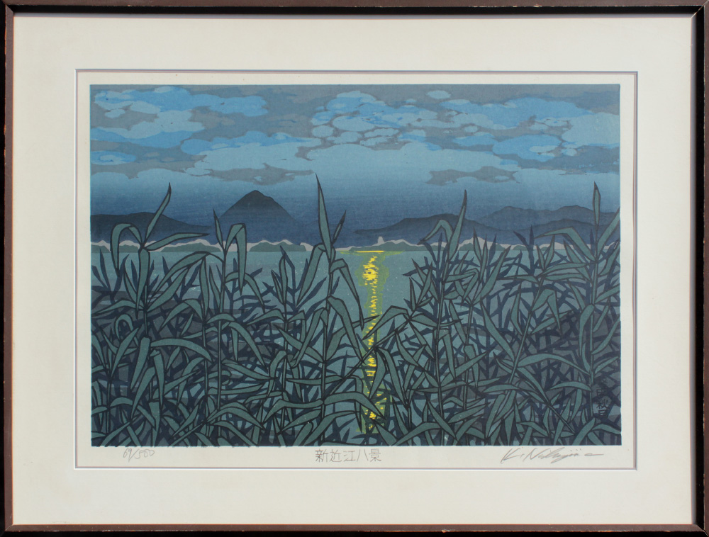 NISHIJIMA, Katsuyuki, (Japanese, 1945- ): Nocturnal Harbor Scene, Japanese Woodblock Print, sight size 13 3/4'' x 19 1/4'', pencil signed lower right, numbered 69 of 500 lower left, original frame, 19'' x 25''.