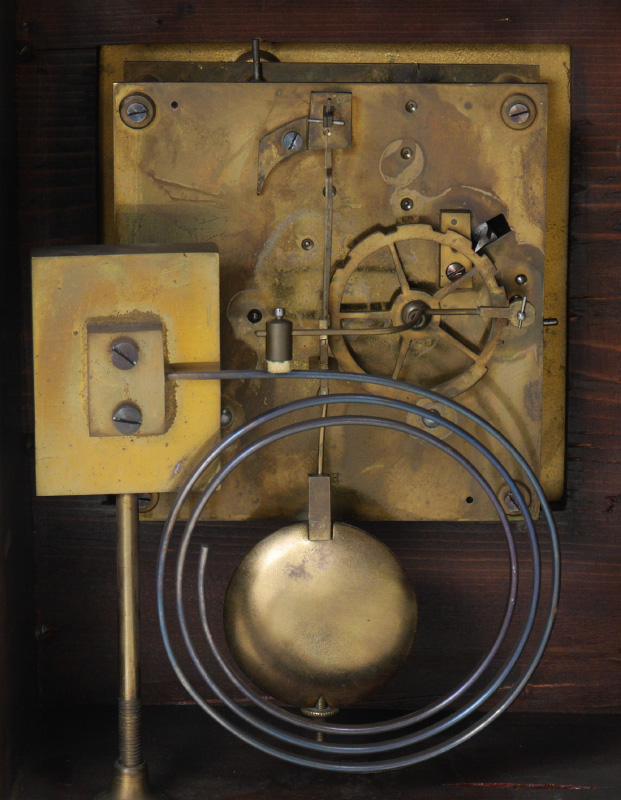 CONDITION: Uneven finish to dial, currently running however not guaranteed to continue or to keep accurate time. Pendulum in office.