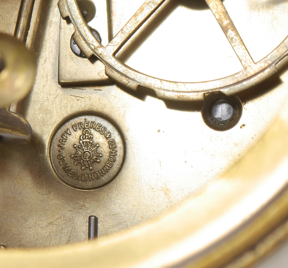 CONDITION: Minor chips back of base, hairlines to dial, missing front crystal, and missing suspension spring for pendulum. Unable to determine functionality. Pendulum in office.