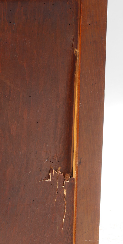 CONDITION: Damage to back, evidence of prior wood worms, other wear consistent with age and use.