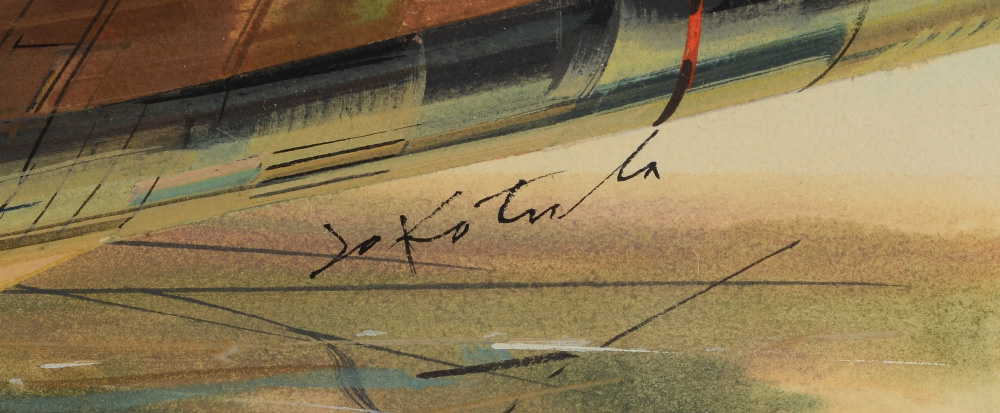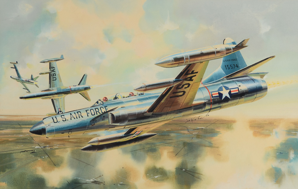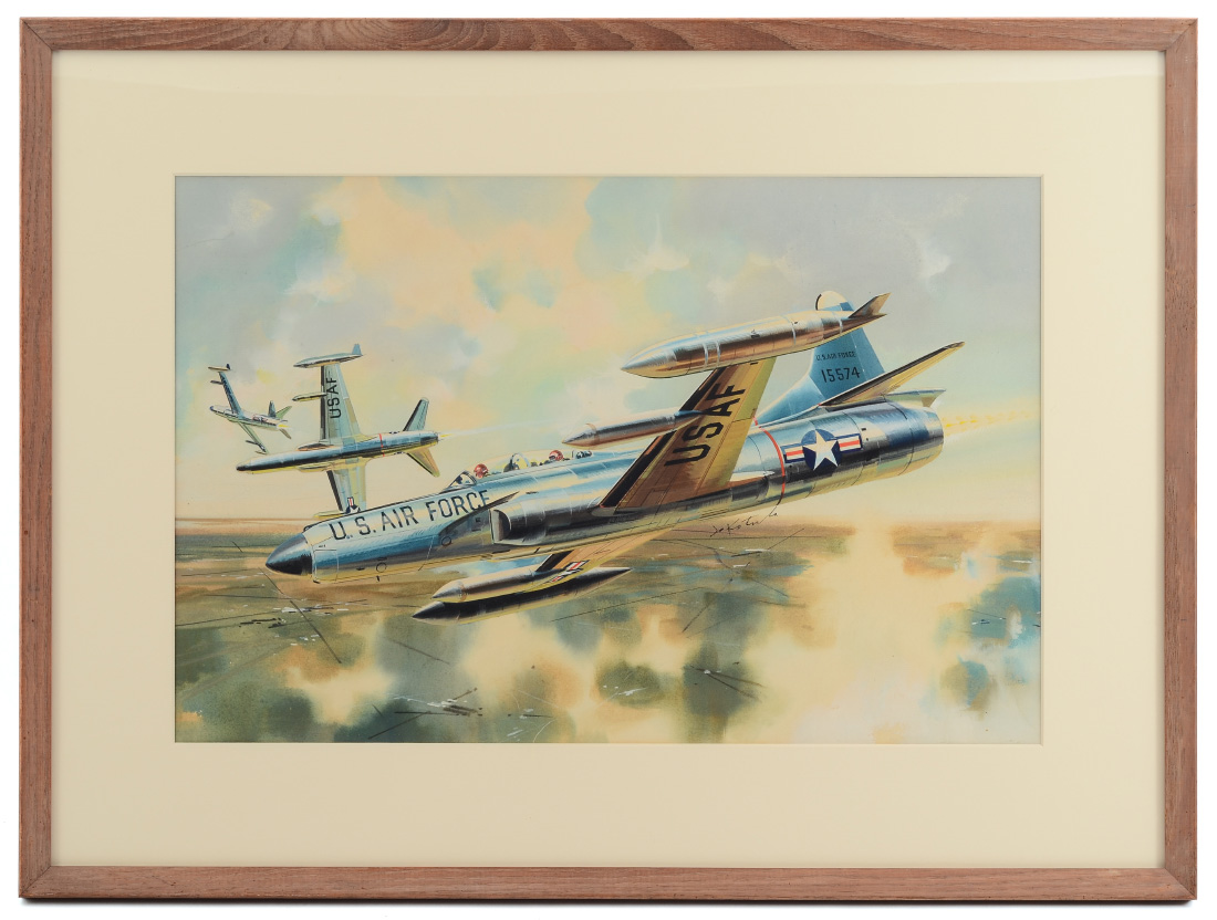 KOTULA, Jo, (American, 1910-1998): Air Force Fighter Planes Illustration, Watercolor, sight size 13 1/2'' x 20 1/2'', signed, framed, 21'' x 28 1/4''.
