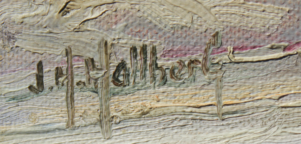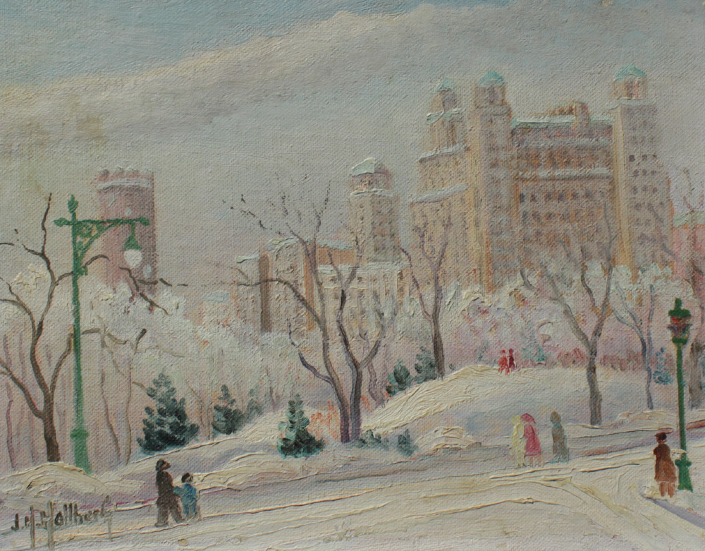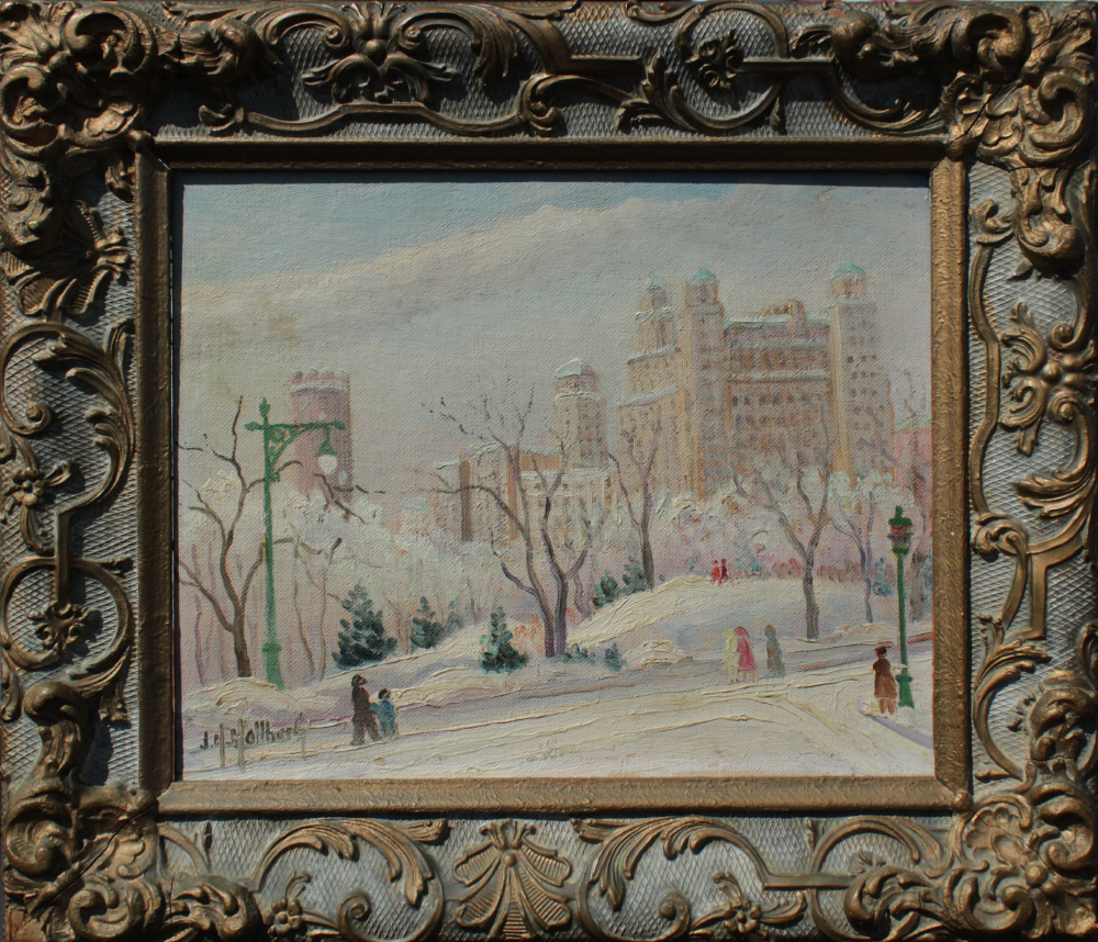 HALLBERG, J. Henry, (American, 20th Century): Central Park in Winter, Oil/Canvasboard, sight size 8'' x 10'', signed lower left, framed, 12'' x 13 3/4''.