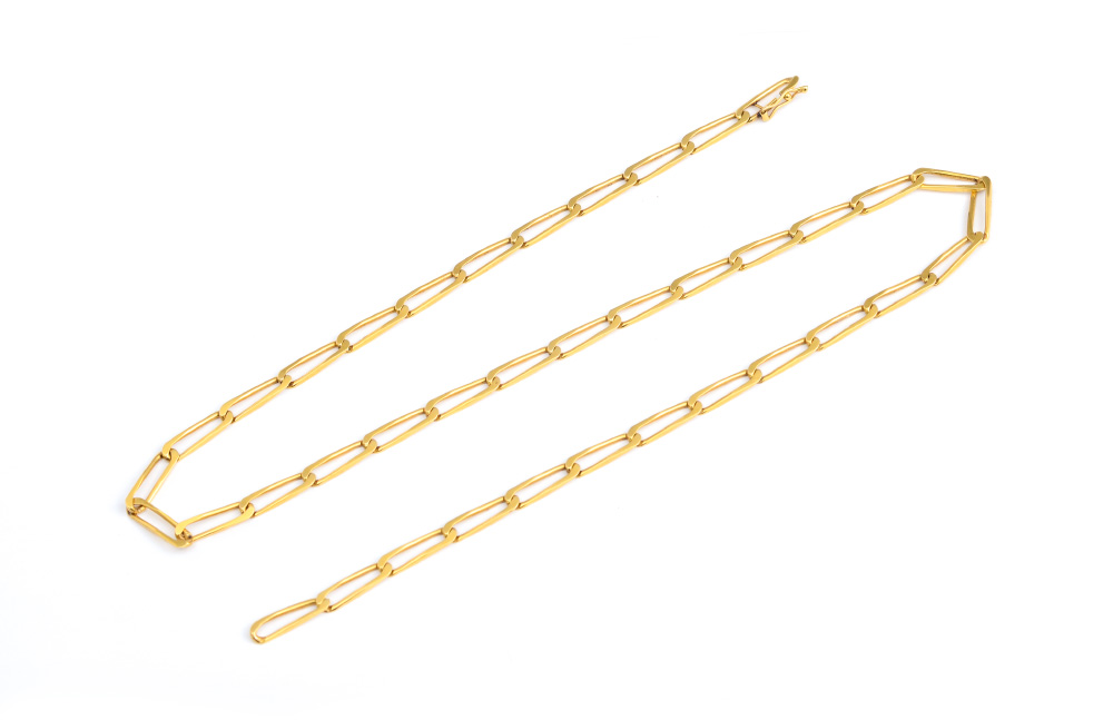 18K LINK CHAIN NECKLACE: 18K yellow gold link chain. Hidden closure with figure eight safety clasp. Weight: 18.2 grams. Length: 18''