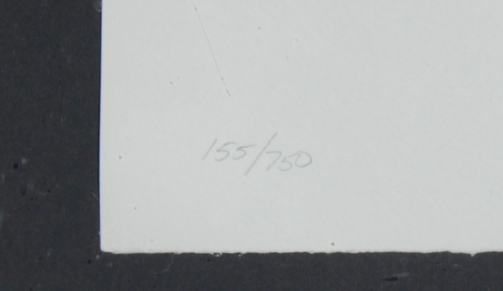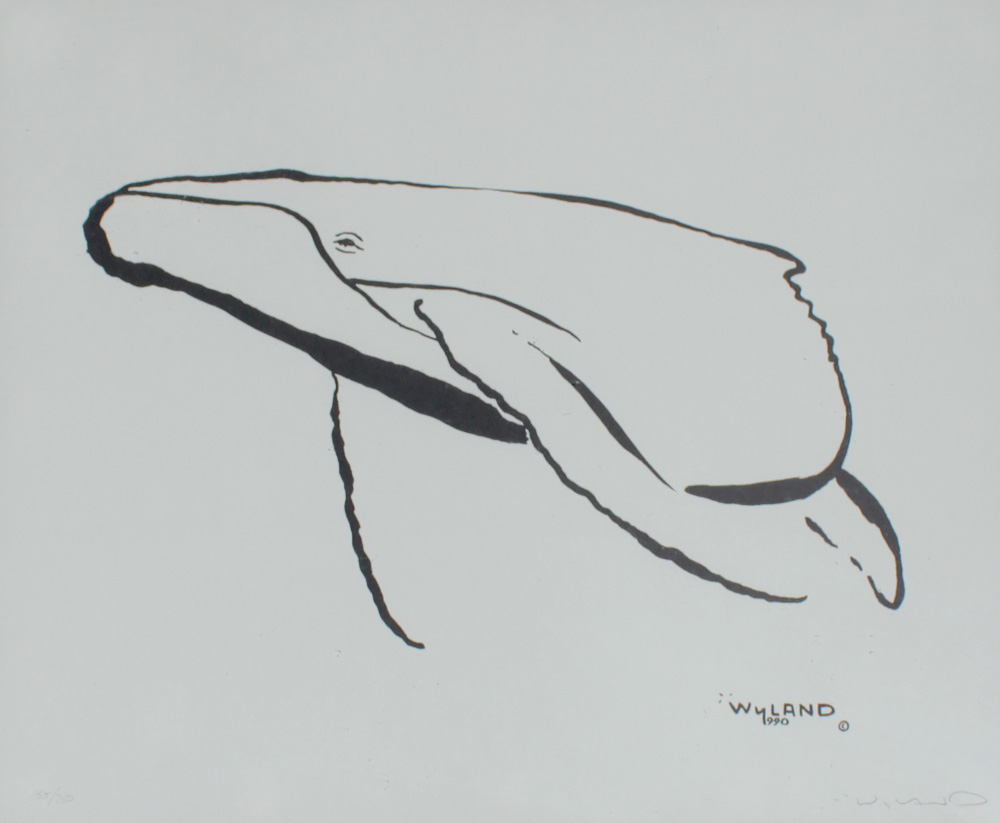 WYLAND, Robert, (American, 1956- ): Humpback Whale, Lithograph, sight size 17 3/4'' x 22 3/4'', pencil signed lower right, numbered 155 of 750 lower left, black lacquer frame, 28'' x 33''.