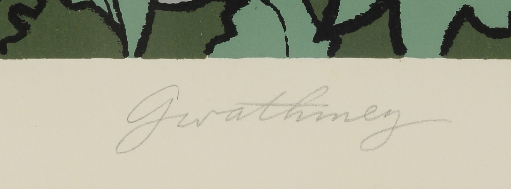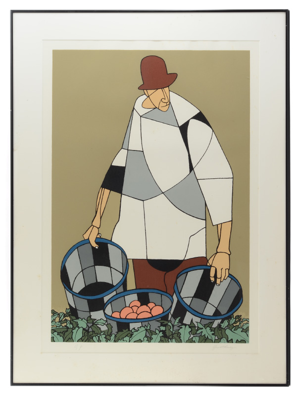 GWATHMEY, Robert, (American, 1903-1988): ''Migrant'', Color Screenprint, sight size 29 1/2'' x 20 1/2'', pencil signed lower right, marked Artist Proof lower left, contemporary frame, 35 1/2'' x 26 1/2''.