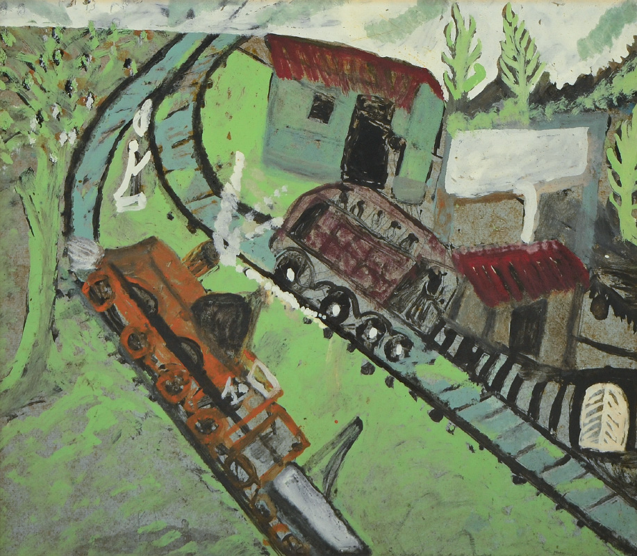 RIVAS, Barbaro, (Venezuelan, 1893-1967): ''El Trancito de Petare'', Landscape with Trains, Oil/Board, 13 7/8'' x 15 3/4'', framed, 18 1/2'' x 20 3/4''.